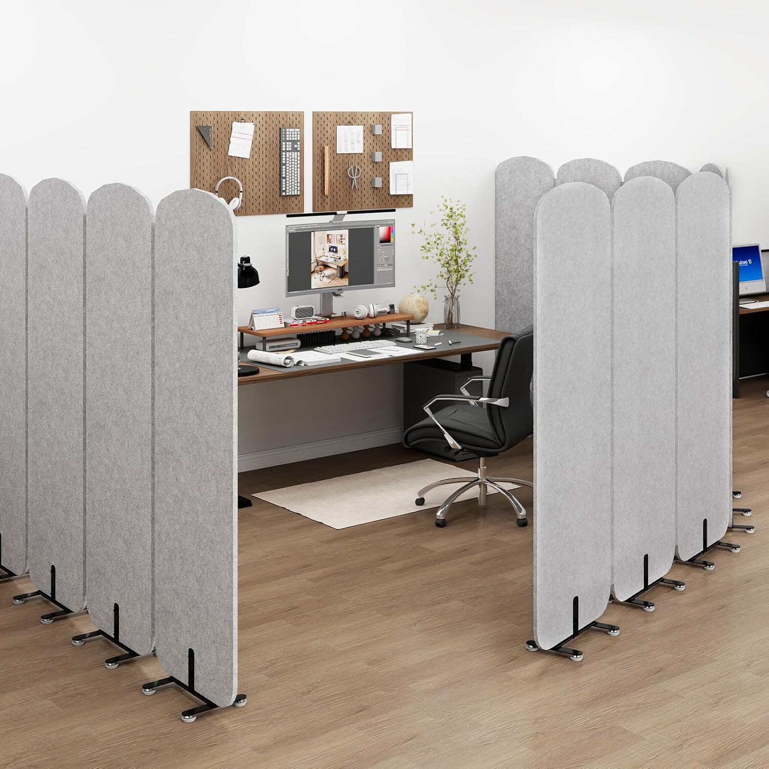- ăFlexible Space DivisionăThe sound proof dividers can easily create different layoutsâideal for meetings, focused work, or individual office cubicle. The high-density material effectively blocks sightlines and reduces noise, crafting an privacy workspace environment for you.