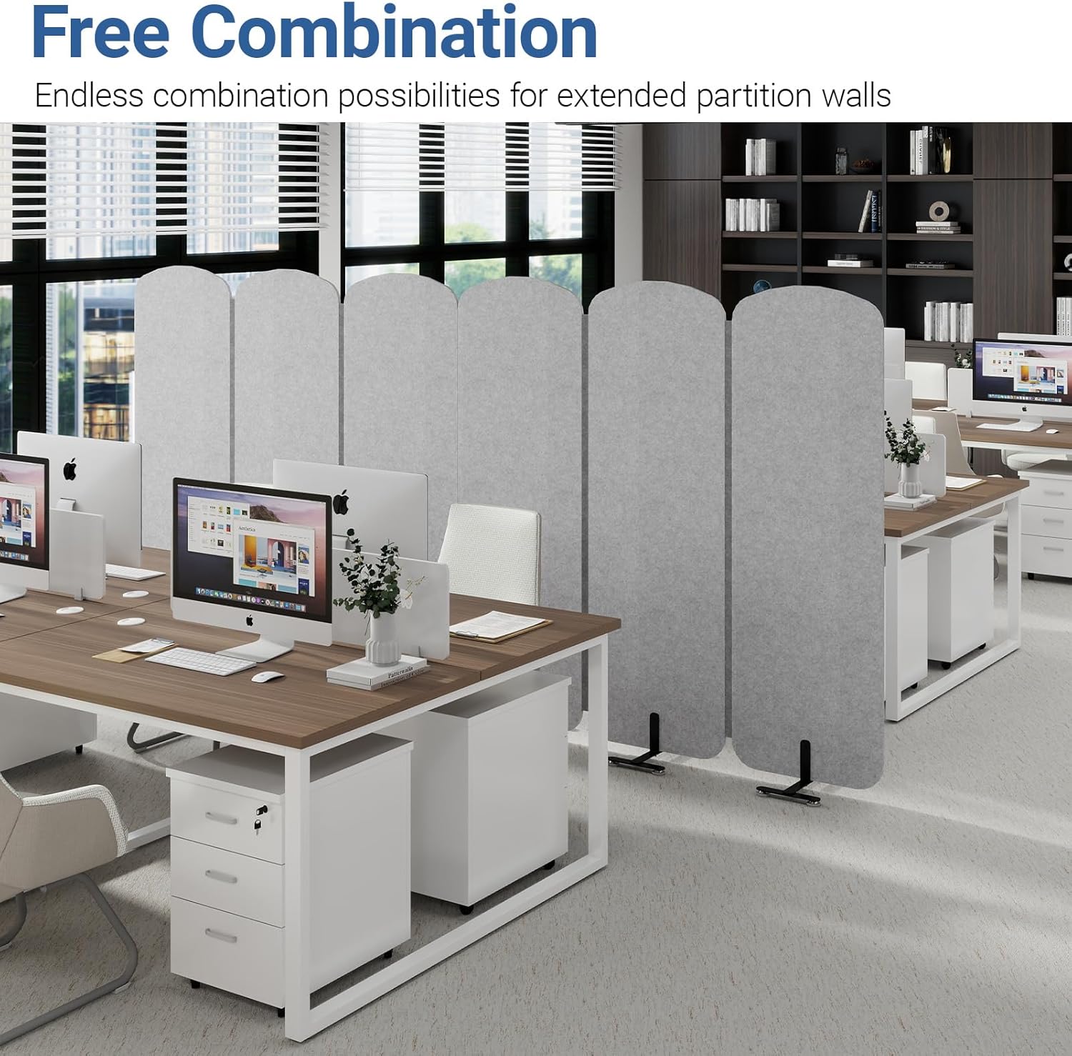 - ăSturdy & Stable Structureă The all-in-one panel design, combined with the I-shaped base, ensures excellent stability with no wobbling. The 0.8ââ thick felt and reinforced steel frame inside the panel keep the room divider panels perfectly aligned without shifting.