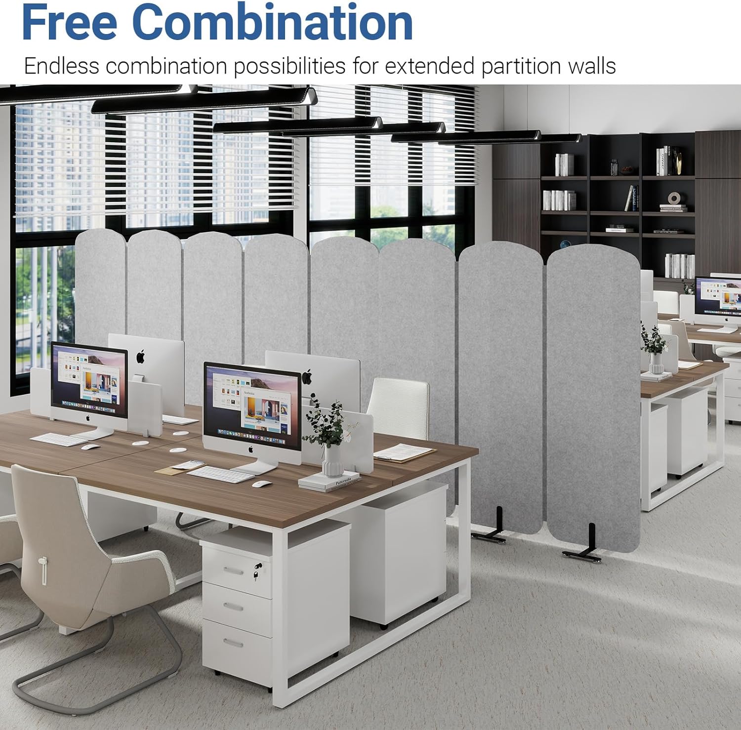 - ăSturdy & Stable Structureă The all-in-one panel design, combined with the I-shaped base, ensures excellent stability with no wobbling. The 0.8ââ thick felt and reinforced steel frame inside the panel keep the room divider panels perfectly aligned without shifting.