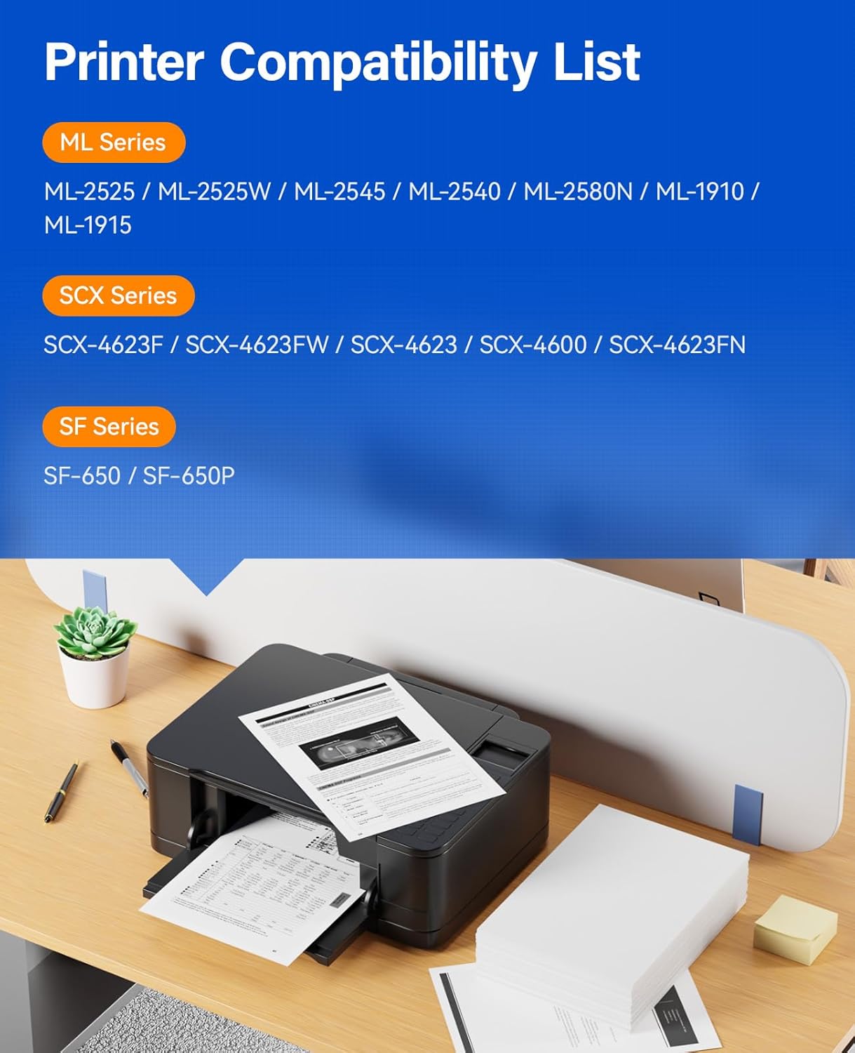 - Compatible Devices : Compatible with Samsung ML-2525, ML-2525W, ML-2545, ML-2540, ML-2580N, ML-1910, ML-1915, SCX-4623F, SCX-4623FW, SCX-4623, SCX-4600, SCX-4623FN, SF-650, SF-650P Series Printers. Compatible with Samsung ML-2525, ML-2525W, ML-2545, ML-2540, ML-2580N, ML-1910, ML-1915, SCX-4623F, SCX-4623FW, SCX-4623, SCX-4600, SCX-4623FN, SF-650, SF-650P Series Printers.