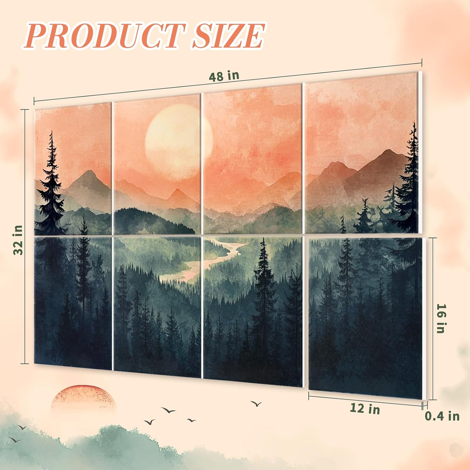 8 Pack 48"x32" Art Acoustic Panels, Self Adhesive Soundproof Wall Decorative Sound Absorbing Panels, High-Density Noise Dampening Canceling Reducing Blocker for Room Office(Setting Sun)