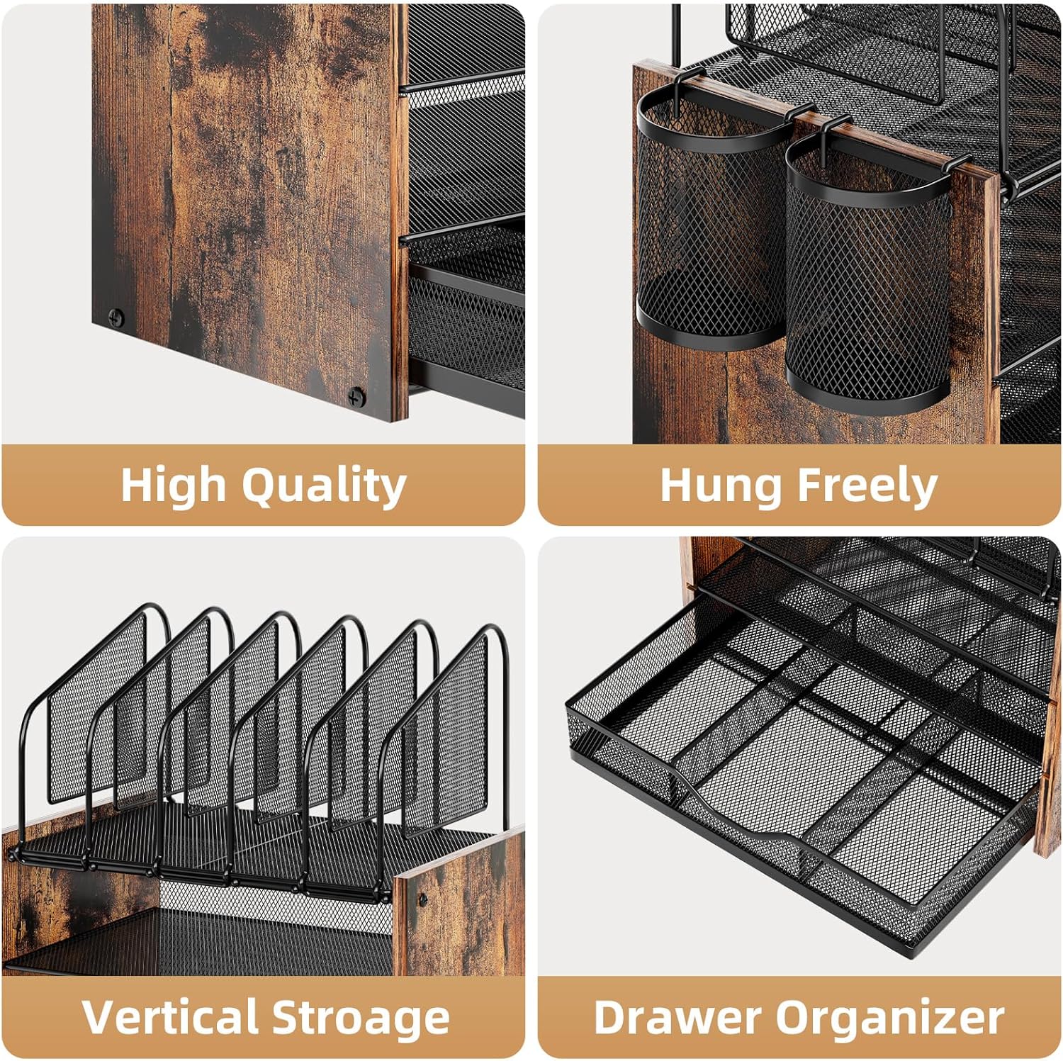- Special Feature : Wooden Mesh File Organizer-Dark Brown