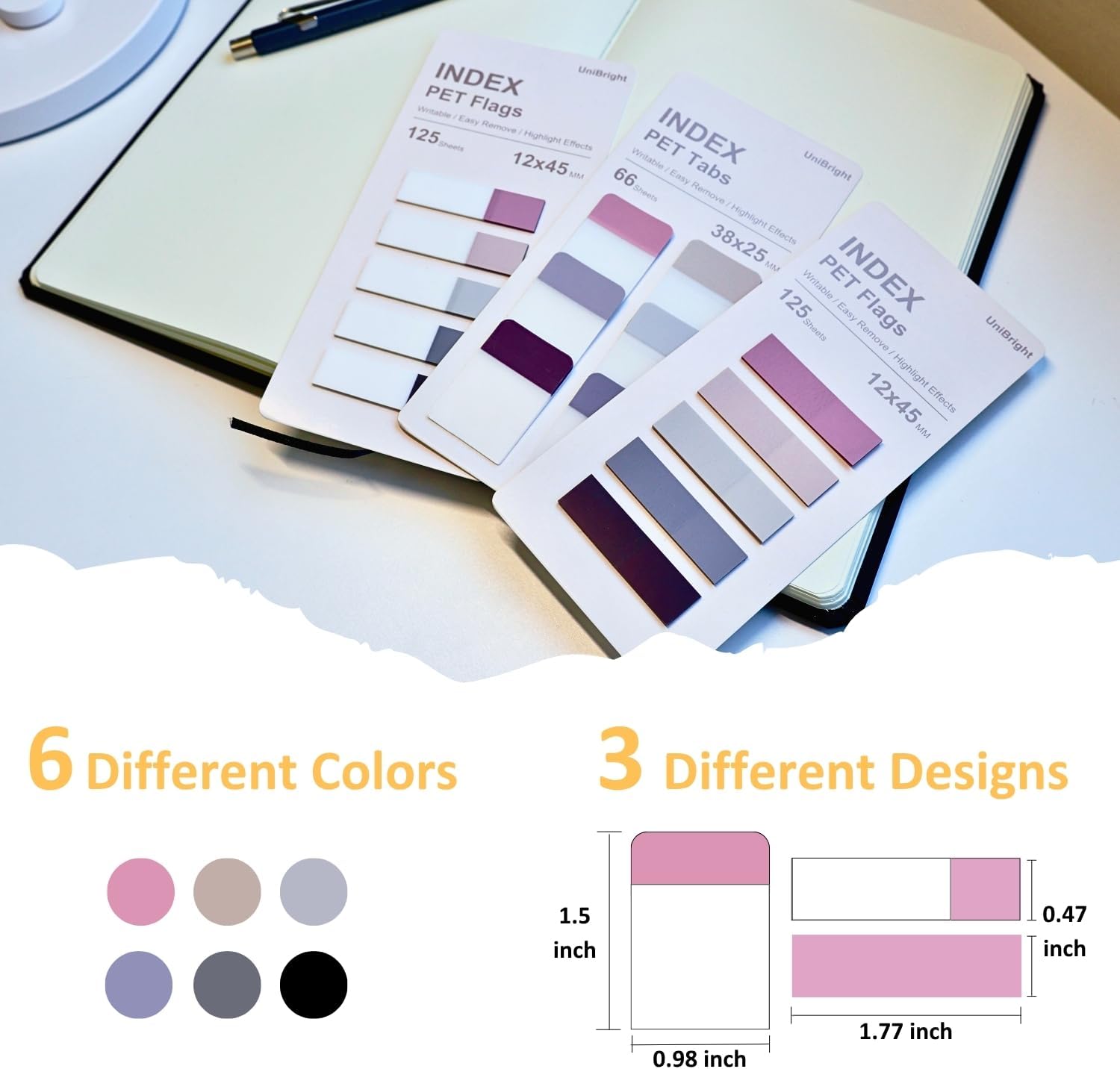 - USAGE OPTIONS: Designed in different types, allowing for extensive use as tabs or highlights in marking or annotating various notebooks, documents, and files