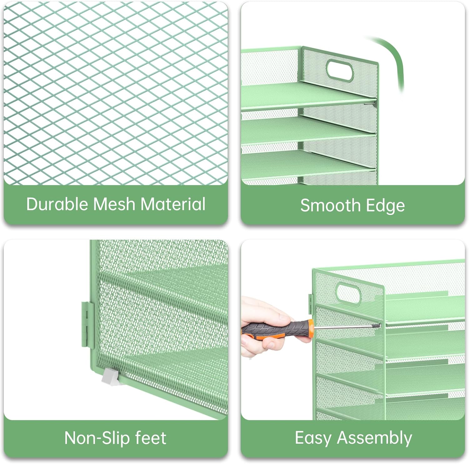 7 Tier Paper Organizer - Mesh Desktop File Holder with Handles for Office School Desk, Black (Mint green)