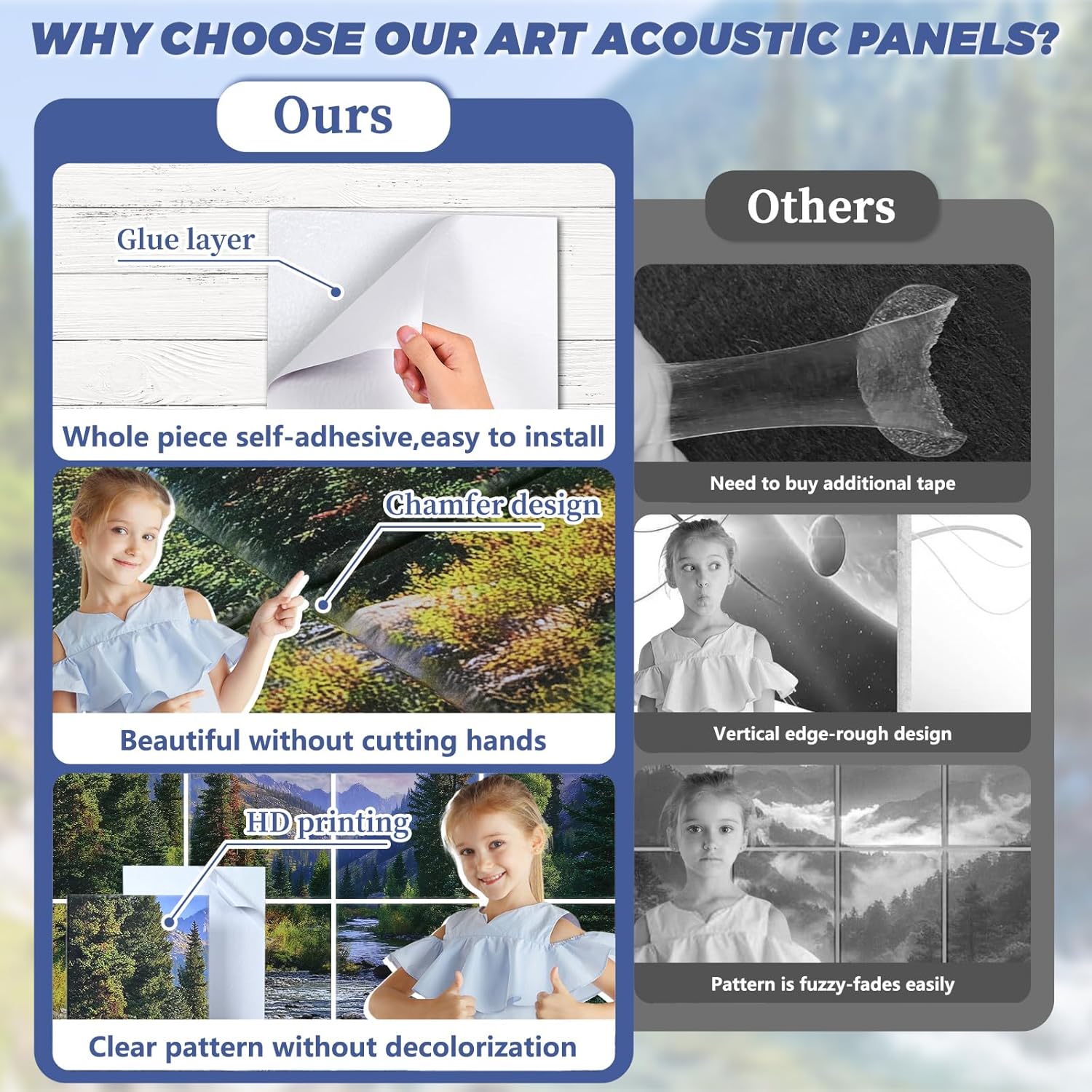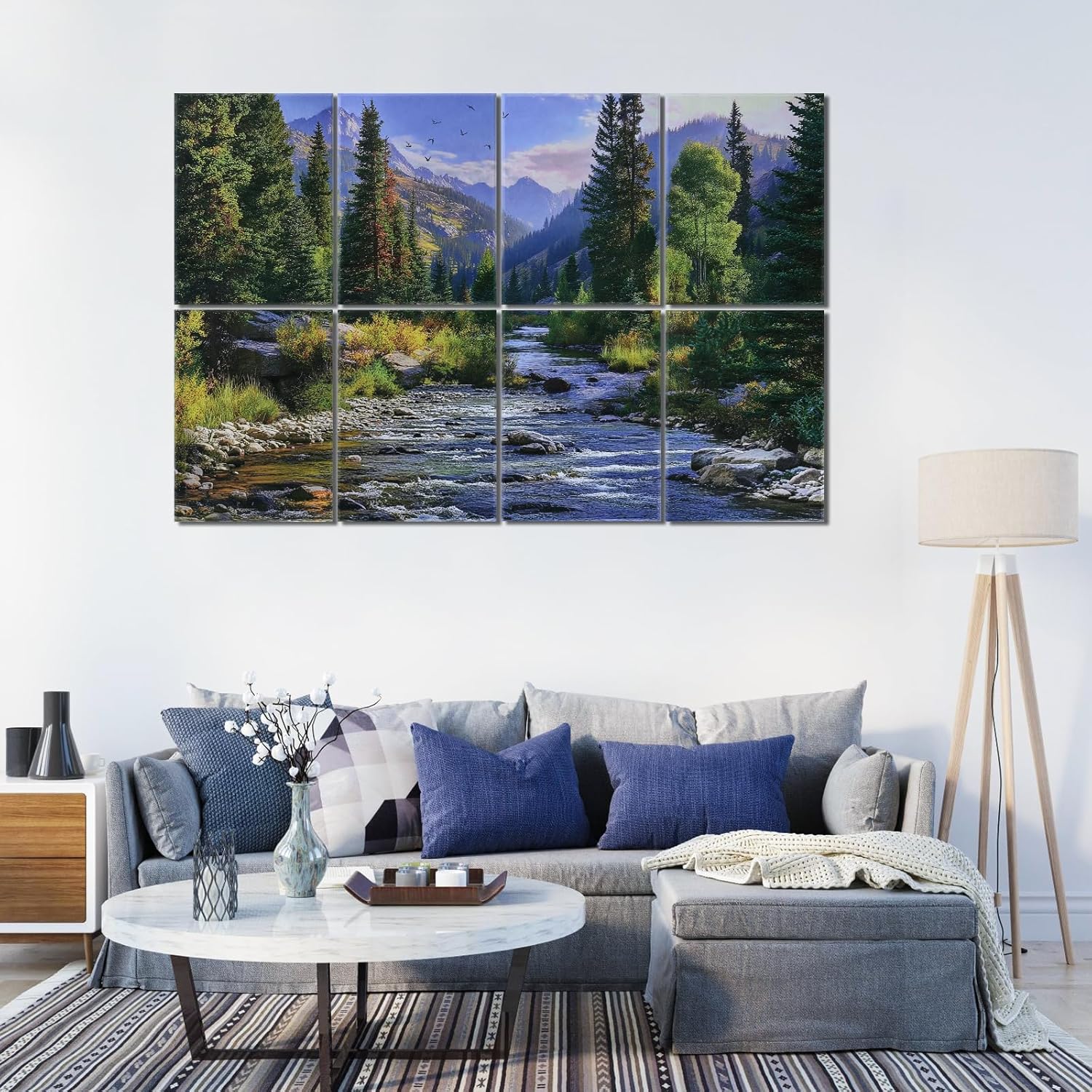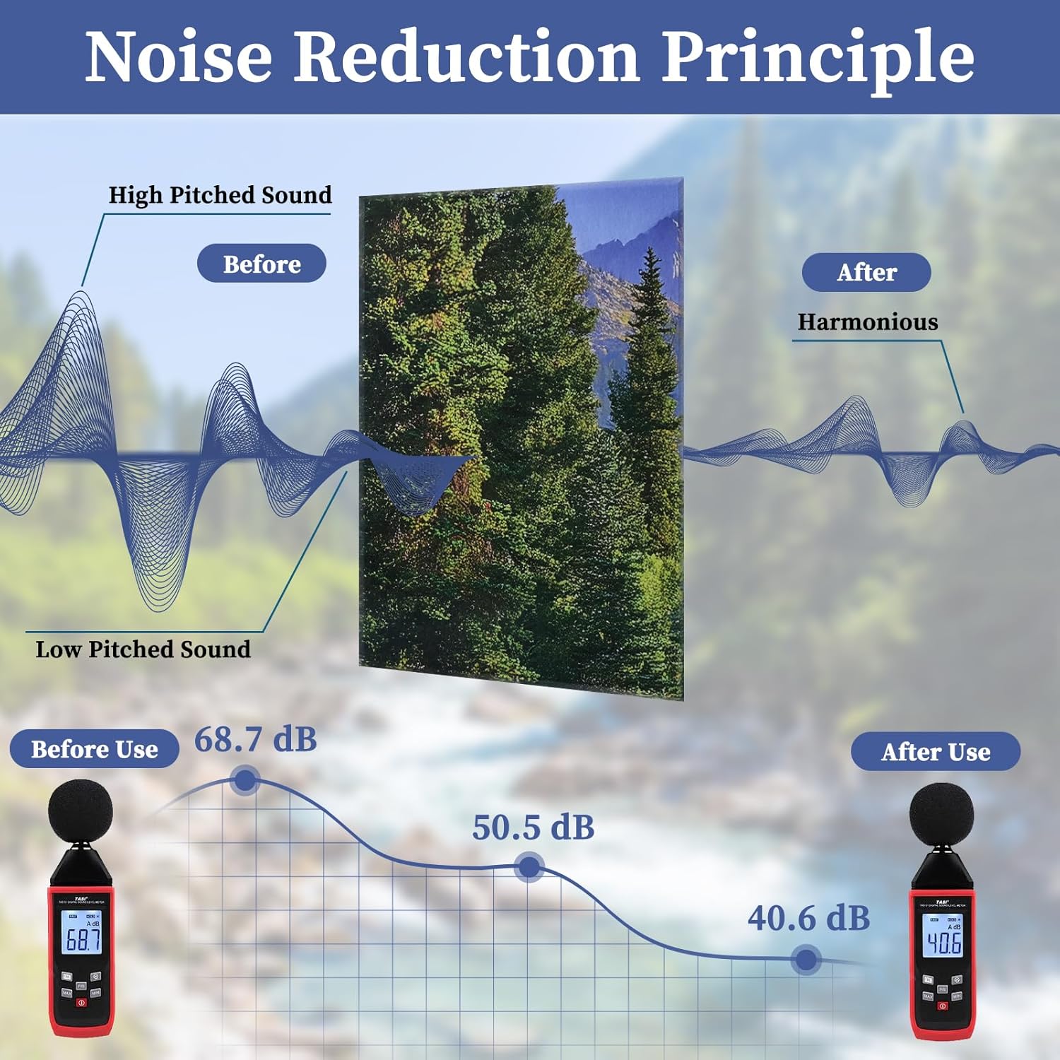 8 Pack Art Acoustic Panels, 48"X32" Self-adhesive Soundproof Wall Panels, Decorative Sound Absorbing Panel, Acoustic Treatment for Studio, Home, Office (Mountain Stream)