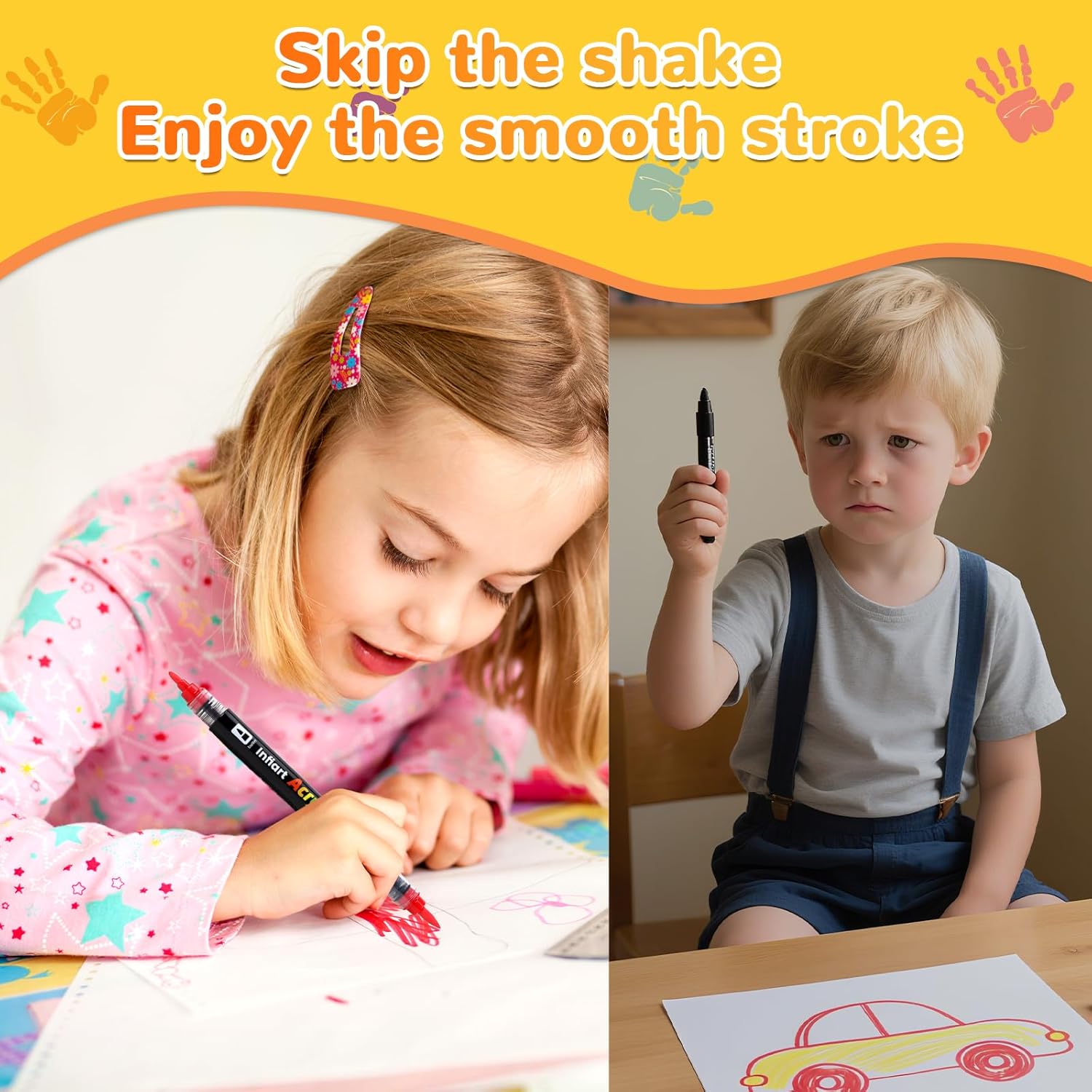 - Large Capacity & Ink Control Upgrade: Our art supplies acrylic markers have a large capacity of 3.4g and a much longer usage time than ordinary markers. After upgrading of ink control, our paint marker have a unique automatic ink control system and dual tube independent ink storage, ensuring smooth and even ink flow without overflow or blockage. Consistent ink flow, every time. No shaking.