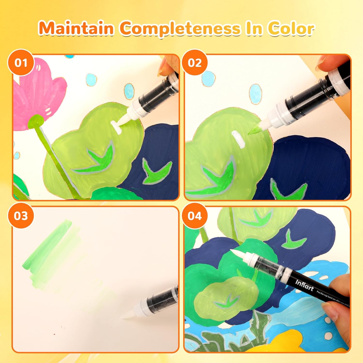- Large Capacity & Ink Control Upgrade: Our art supplies acrylic markers have a large capacity of 3.4g and a much longer usage time than ordinary markers. After upgrading of ink control, our paint marker have a unique automatic ink control system and dual tube independent ink storage, ensuring smooth and even ink flow without overflow or blockage. Consistent ink flow, every time. No shaking.