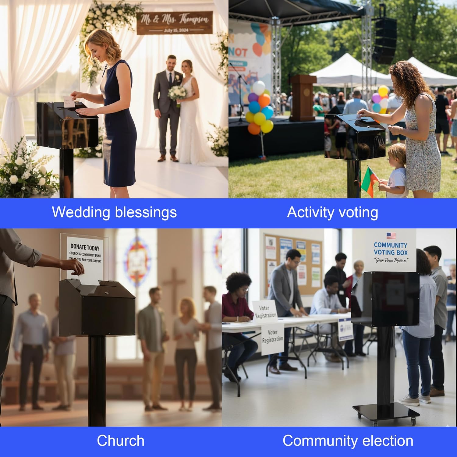 - 【Mobile & Floor-Standing 】39.6 in tall pedestal with four 360-degree casters (two lockable); move this ballot box on wheels easily between entrances, lobbies and booths.