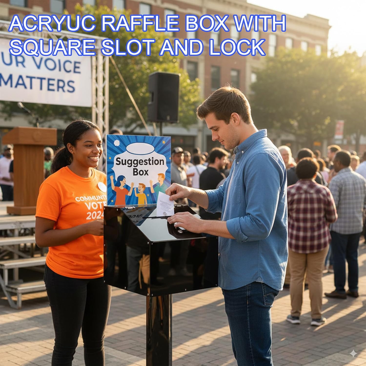 - 【Secure Locking】 Sturdy metal lock with a tamper-resistant acrylic body keeps ballots, donations and feedback safe; doubles as a raffle ticket box, collection box, or comment box.