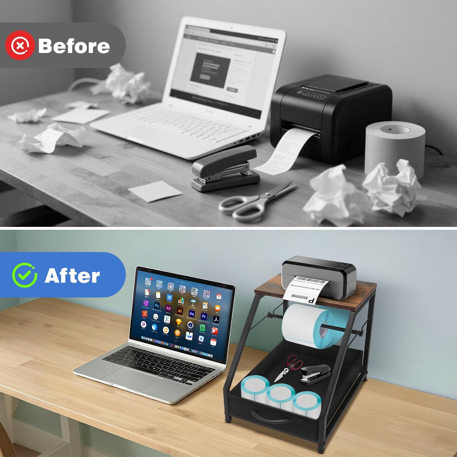- β DECLUTTER & STREAMLINE YOUR WORKSPACE: This all-in-one thermal printer stand organizes your printer, labels, and supplies into one compact hub. An essential thermal label holder for small businesses and home offices, it saves you valuable time on every order.