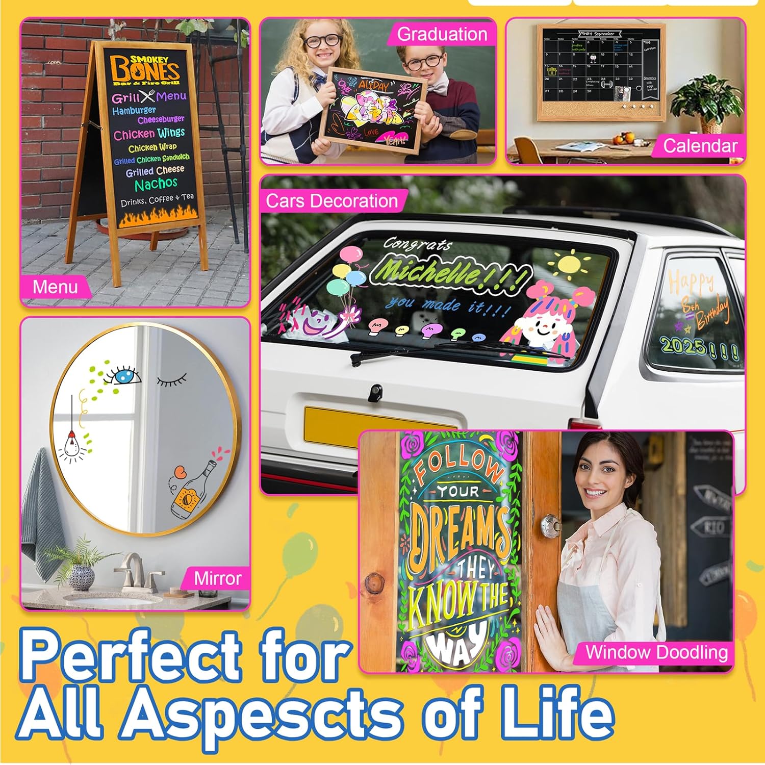 - Perfect for decorating car windows, mirrors, and even tires. Make beautiful artwork to creating holiday decorations for Christmas, 4th of July, Halloween, Birthdays๏ผ Graduation Car Decorations and more. Have fun and be creative!