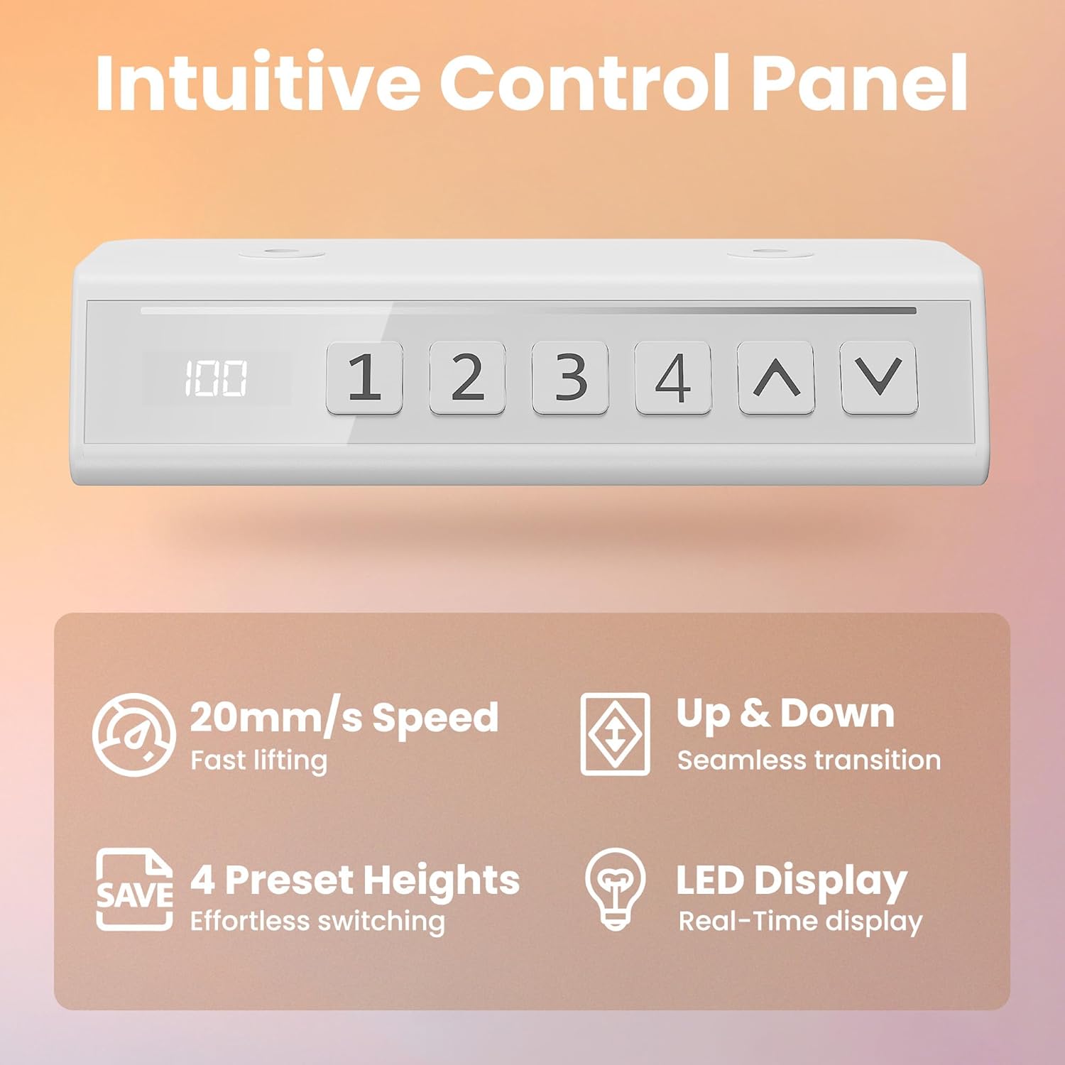 - Convenient Memory Presets: Featuring four programmable height settings, the smart control panel lets you switch to your preferred height with a single touchβno more tedious manual adjustments.