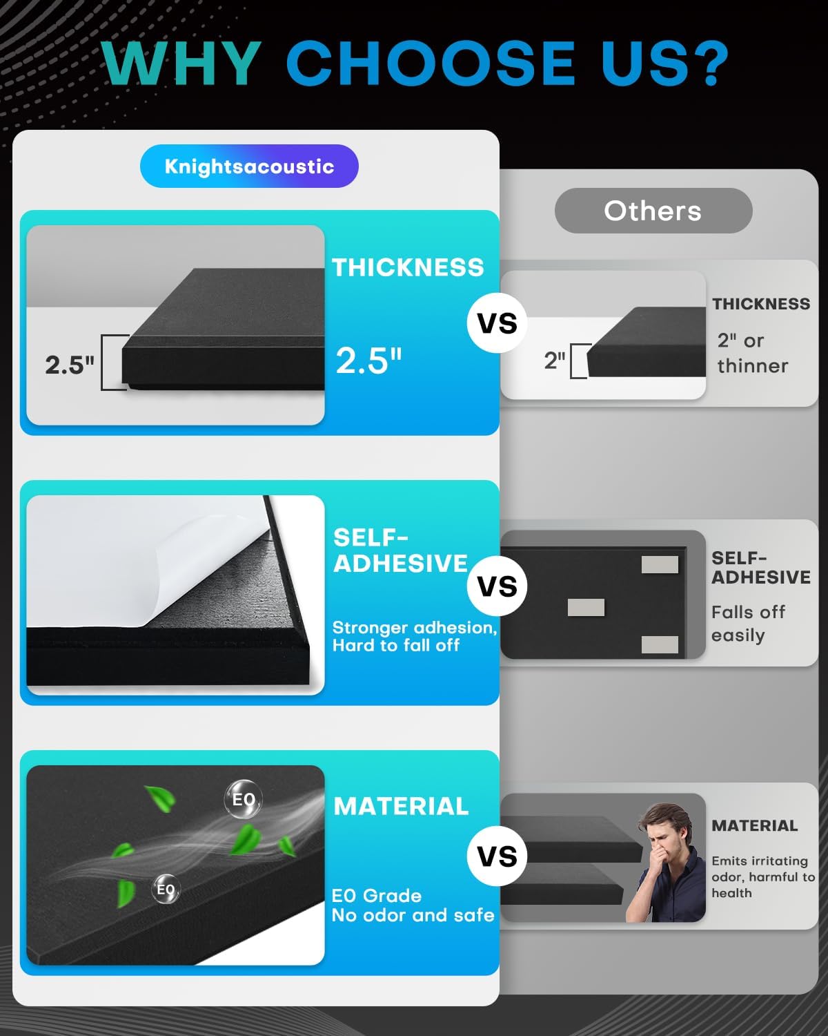 - SUPER STRONG SOUND ABSORPTION: The 2.5-inch thick professional sound-absorbing panel features an excellent sound absorption performance with an NRC of 0.95, which can provide a clearer and more pleasant sound environment. It works better than the 1-inch thick ordinary polyfiber board.