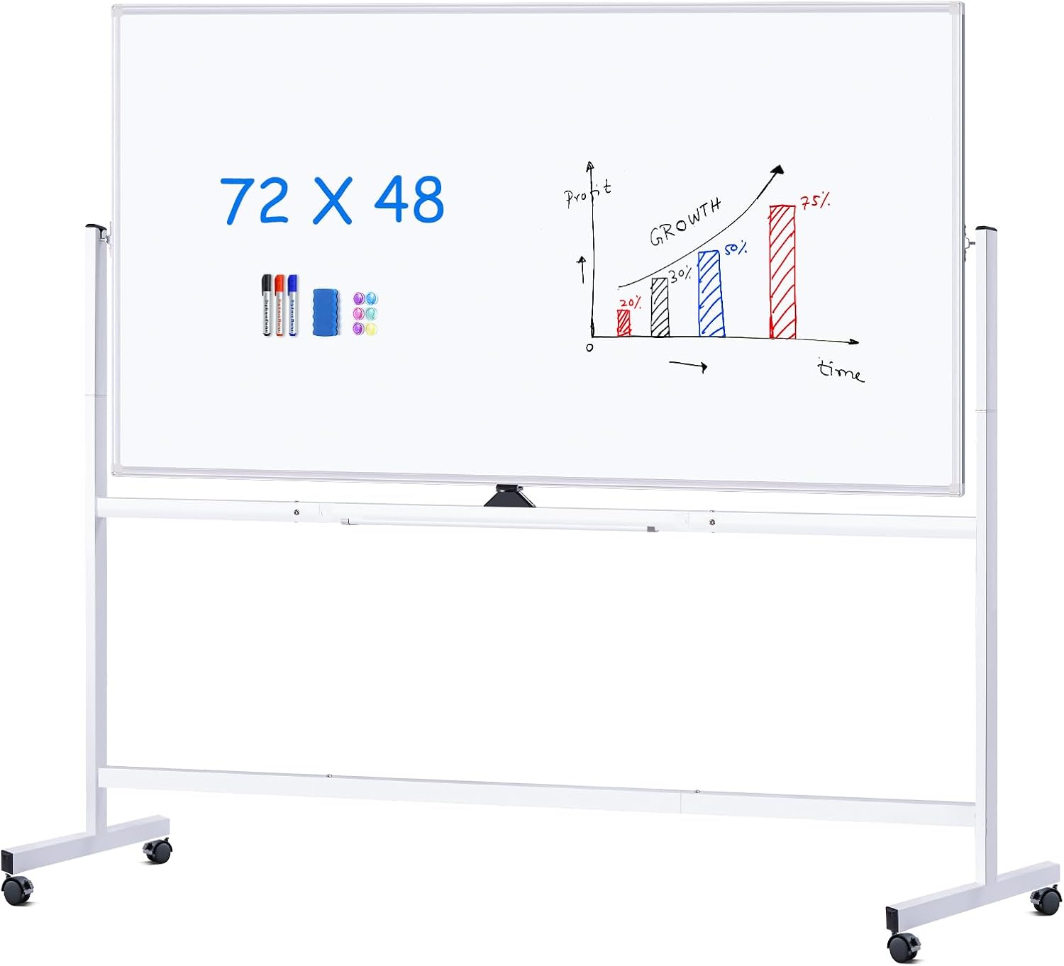 maxtek Rolling Whiteboard 72x48, Large Double-Sided White Board Dry Erase on Wheels, Giant Magnetic White Board Standing for Office, School, Home Office, Homeschool (Sliver)