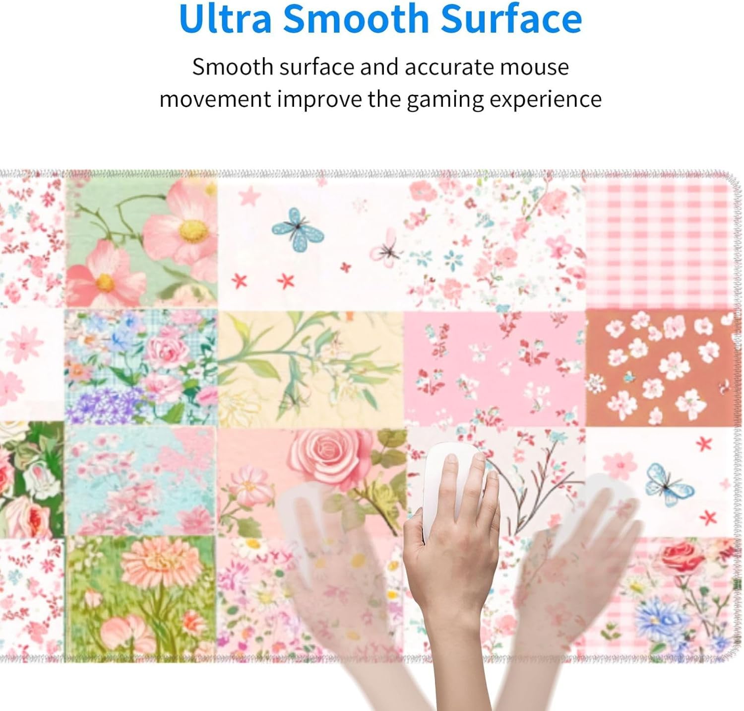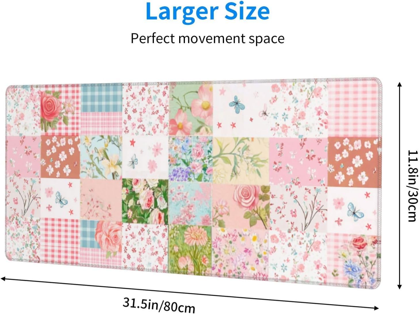Patchwork Mouse Pad 31.5 X 11.8 Inch Big Desk Rubber Base Stitched Edges Keyboard Pad XXL Mouse Mat for Home Game and Office