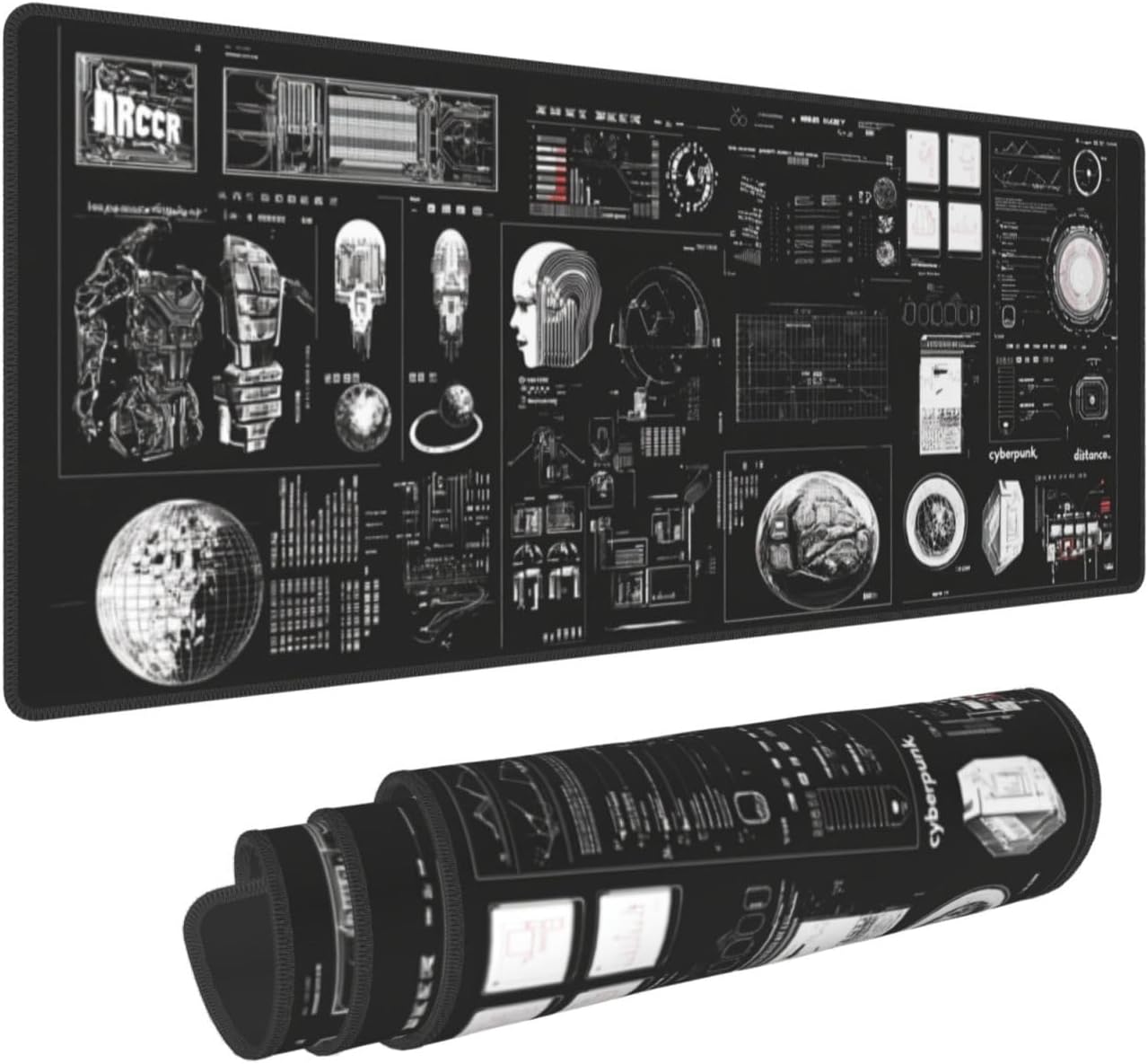 Machine Composition Mouse Pad 31.5 X 11.8 Inch Big Desk Rubber Base Stitched Edges Keyboard Pad XXL Mouse Mat for Home Game and Office