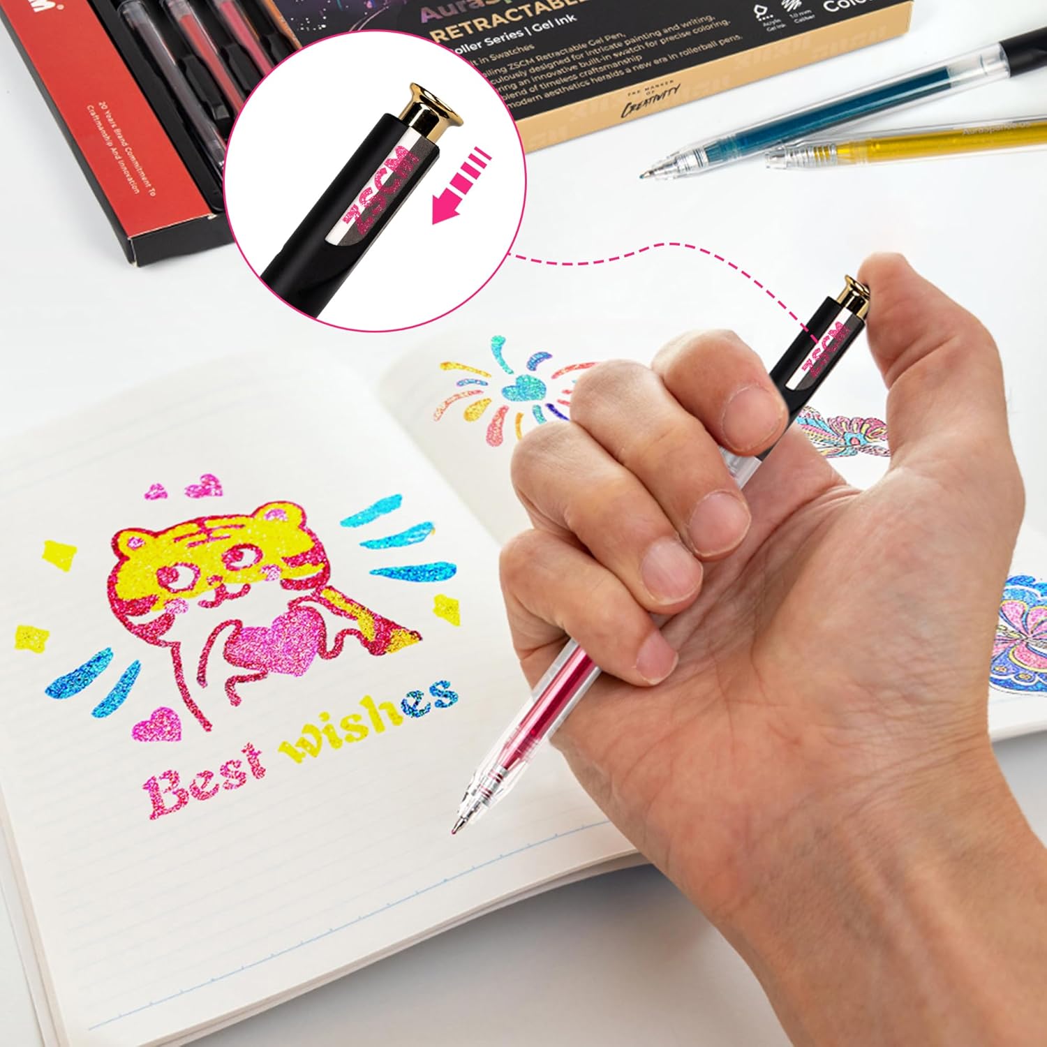 - 12 Sparkle Glitter Gel Pens:Unlock endless creativity with our 12-color glitter gel pen set, featuring a curated selection of shades from our most popular sparkle color families. Each retractable pen features a smooth 1.0mm precision tip and rich, high-density glitter ink that flows effortlessly for flawless detailing. Whether you're a professional artist or crafting enthusiast, these premium sparkle pens will bring your creations to life with dazzling sparkle!