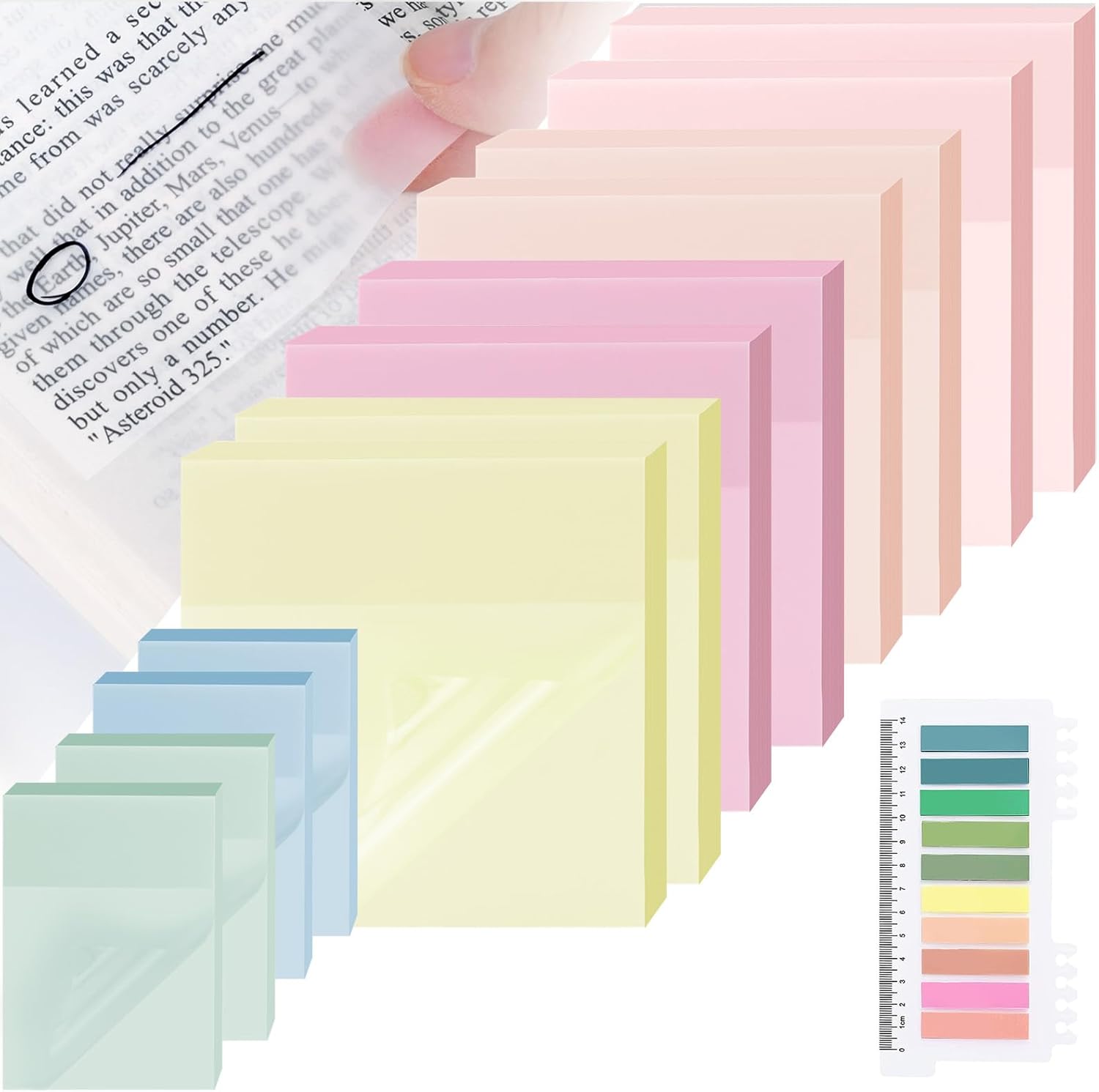 800 Sheets Transparent Sticky Notes with Index Tab, Waterproof & Crystal Clear Sticky Notes Sets, See-Through PET Sticky Note, 5X The Sticking Power Translucent Sticky Note Pad,13 Packs
