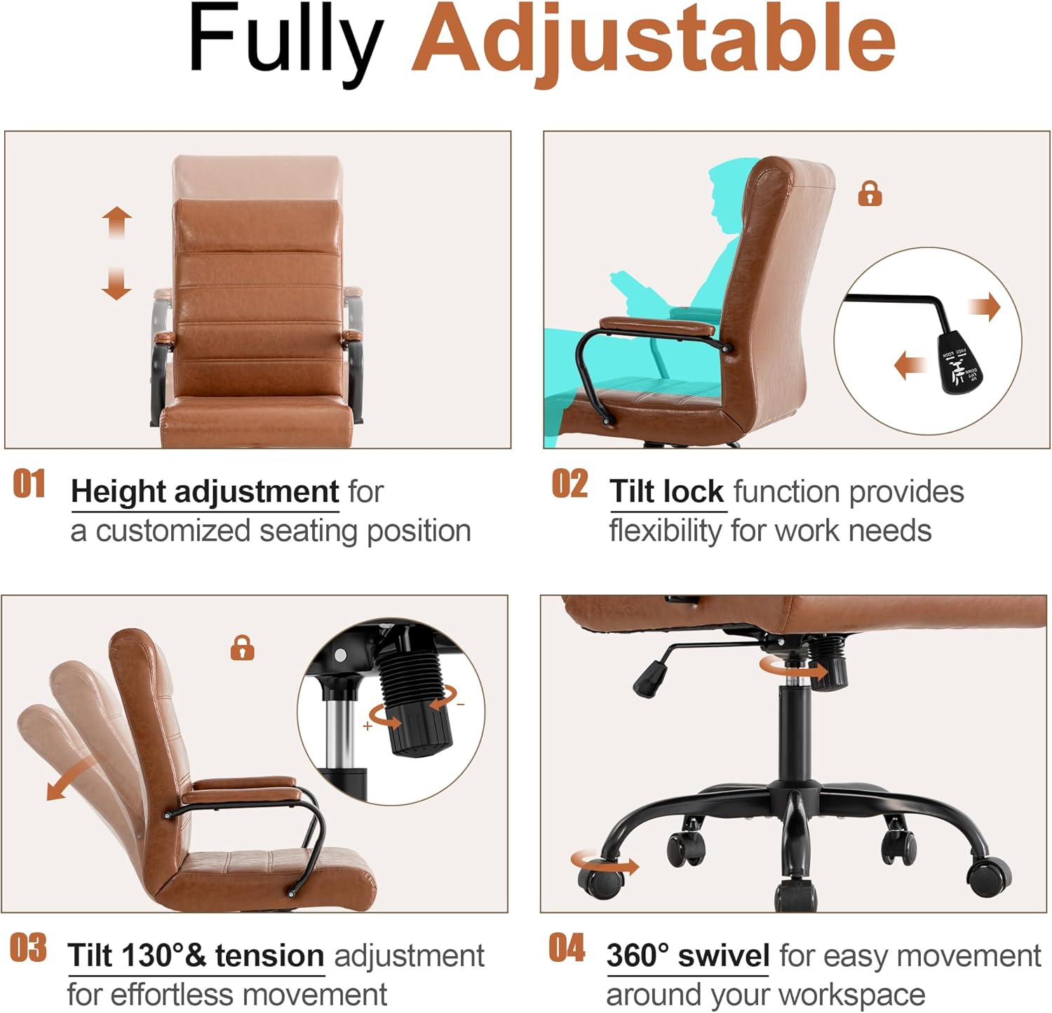 Office Desk Chair,Modern Leather Conference Room Chairs,High Back Home ofiice Chair,Adjustable Height Swivel Executive Computer Chair with Padded Seat and Armrest (Brown with Black Frame)