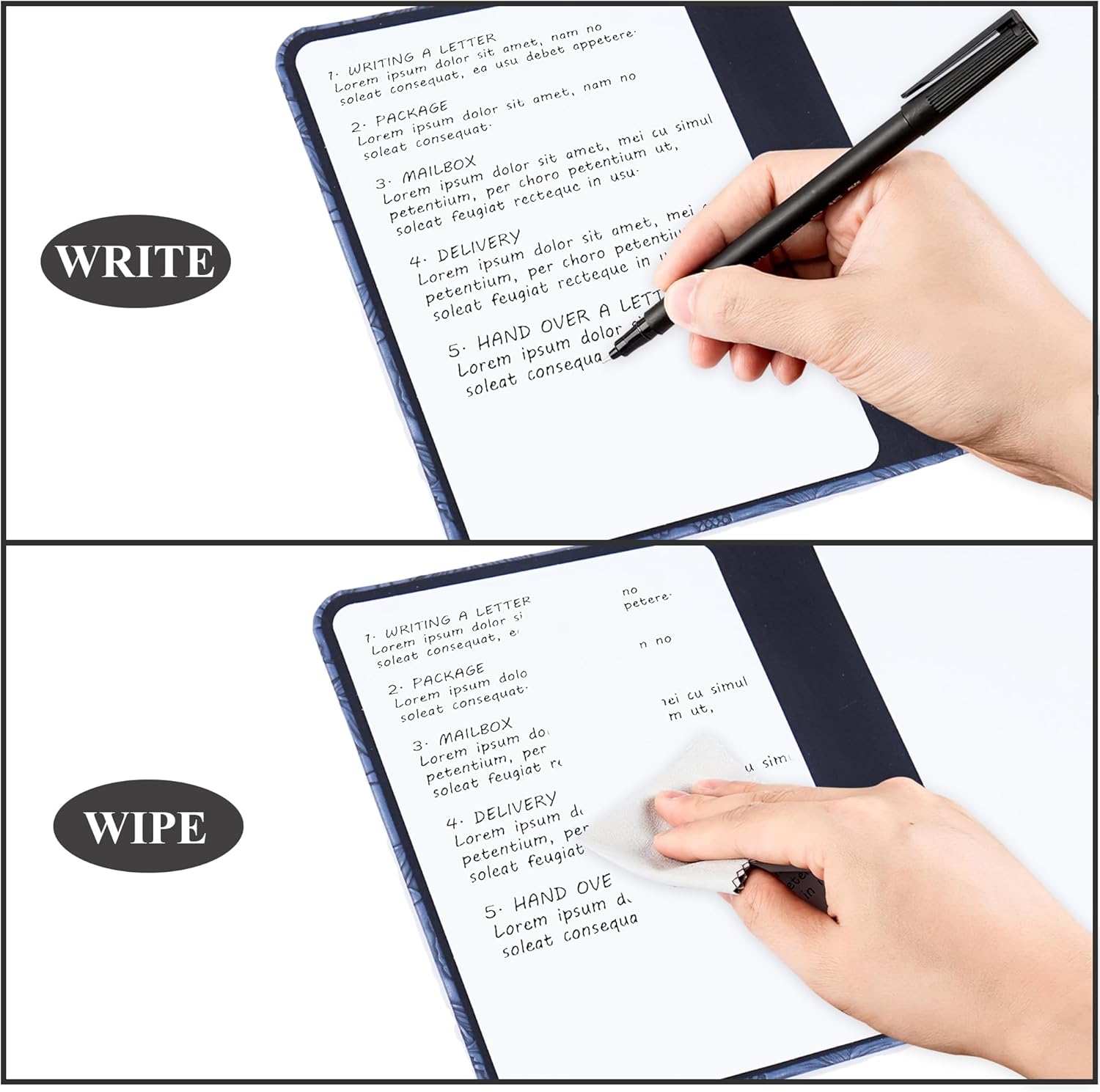 - [Reusable Dry Erase Notebook] Features a smooth writing surface and works with dry-erase markers to keep writing clear and removable. Provides you with a perfect writing experience.