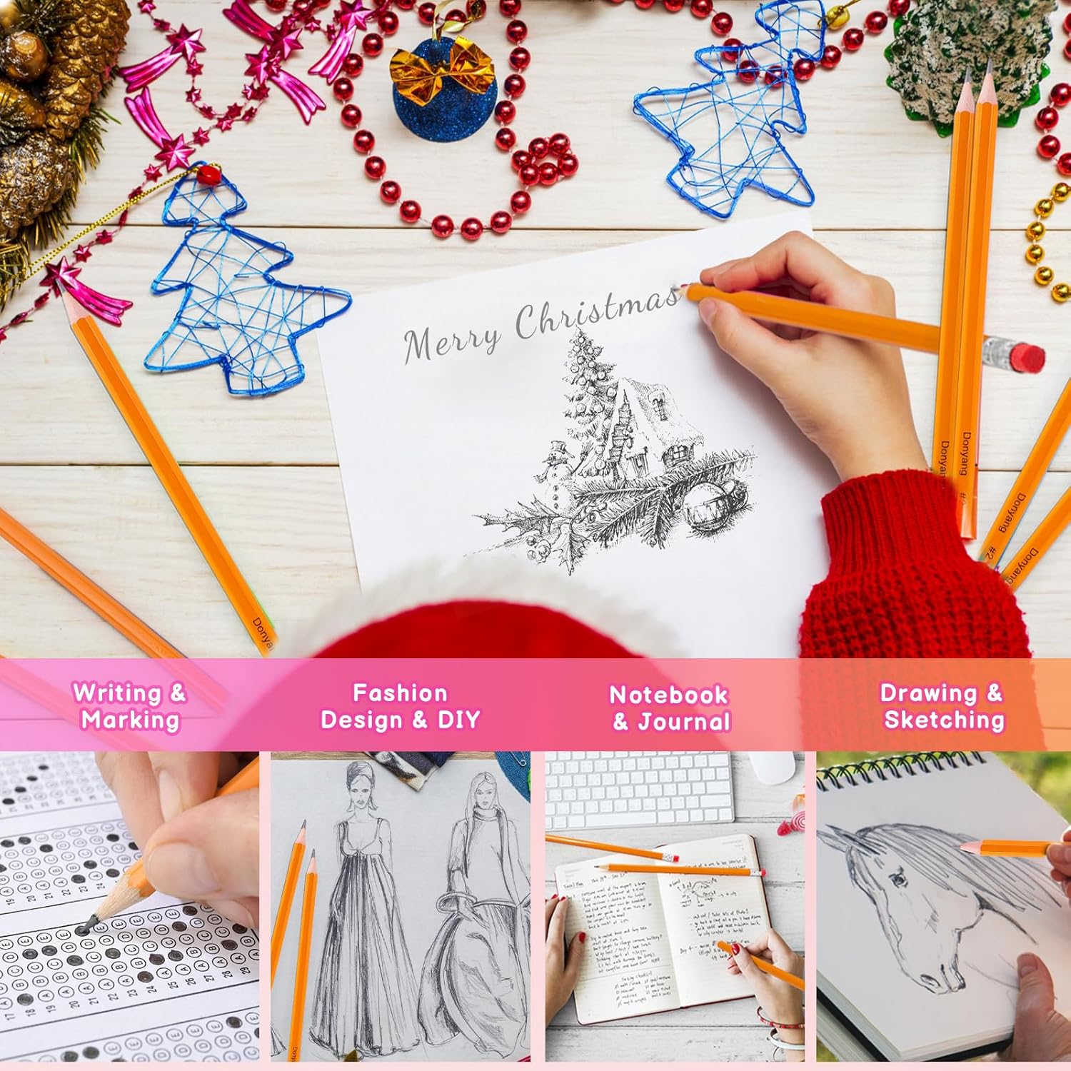 - 【600 PCS Value Pencils Bulk】Donyang’s bulk pack of Number Two pencils comes in a sturdy box with a rounded hexagon shape to reduce rolling. Ideal for schools, offices, and homes, these pencils provide smooth, consistent strokes. They make great gifts for teachers, parents, friends, workmates, and students, perfect for back-to-school supplies and classroom essentials. Furthermore, they are suitable for other occasions such as Halloween, Christmas, Thanksgiving, Easter, birthdays and graduations.