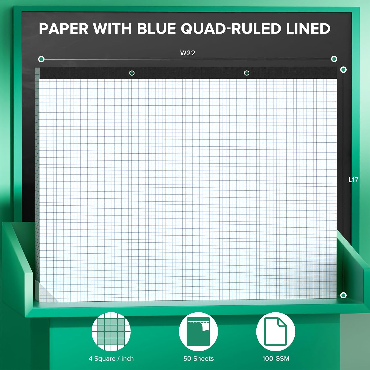 - 【Cardboard Backing】: The hardboard back of the quad ruled graph paper 22 x 17 made of quality card stock material for writing support. The sturdy backing of the grid paper notepad paper offers additional stability while you write, draw, and design, graph paper pad allows you to write, draw and design, take notes without a table or desk to lean on.