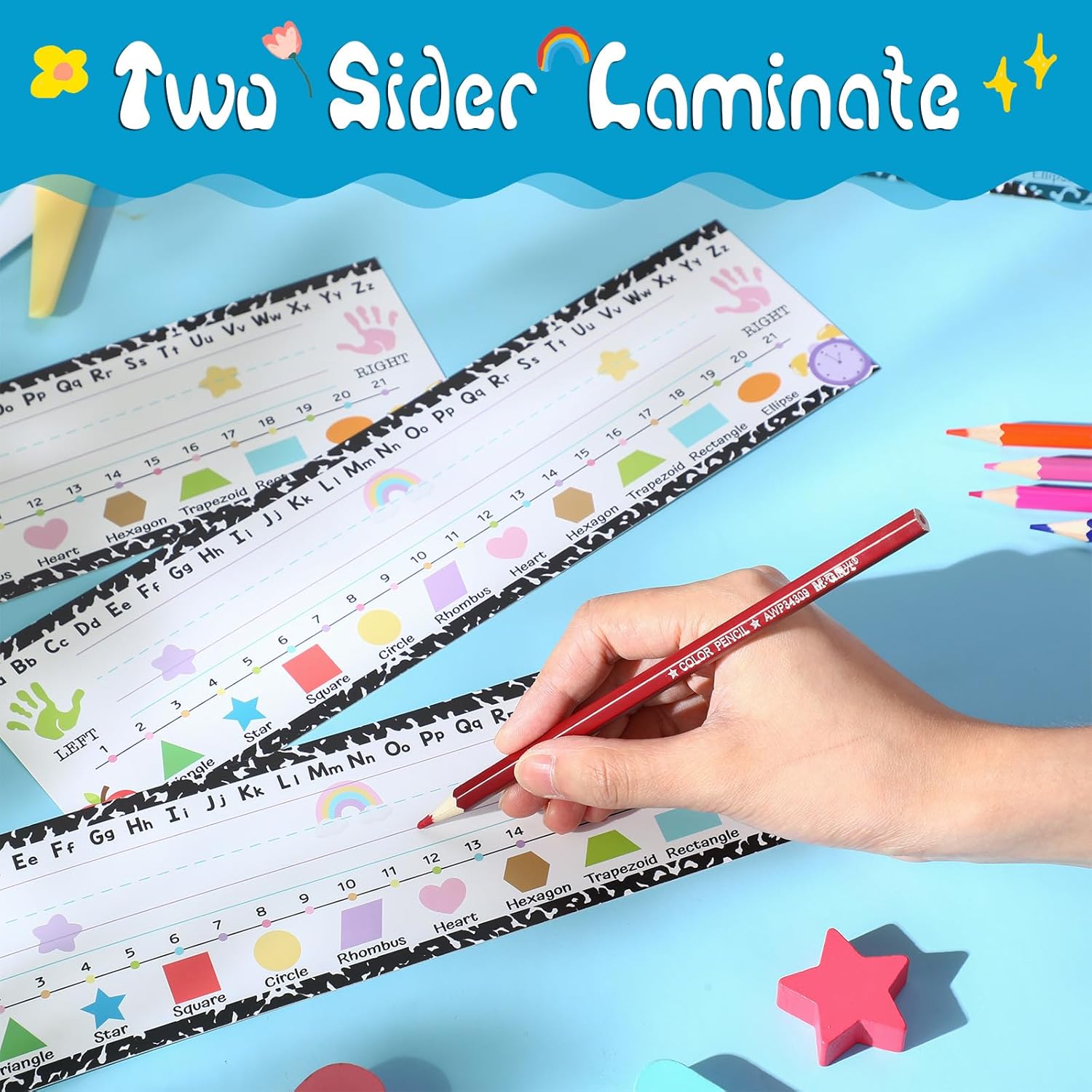 Outus 48 Pcs Name Tags Labels Cutouts Nameplate for Classroom School Name Tags with Alphabet Number Line for Desk ABC Decor Elementary Preschool Bulletin Board Decorations (Composition Notebook)
