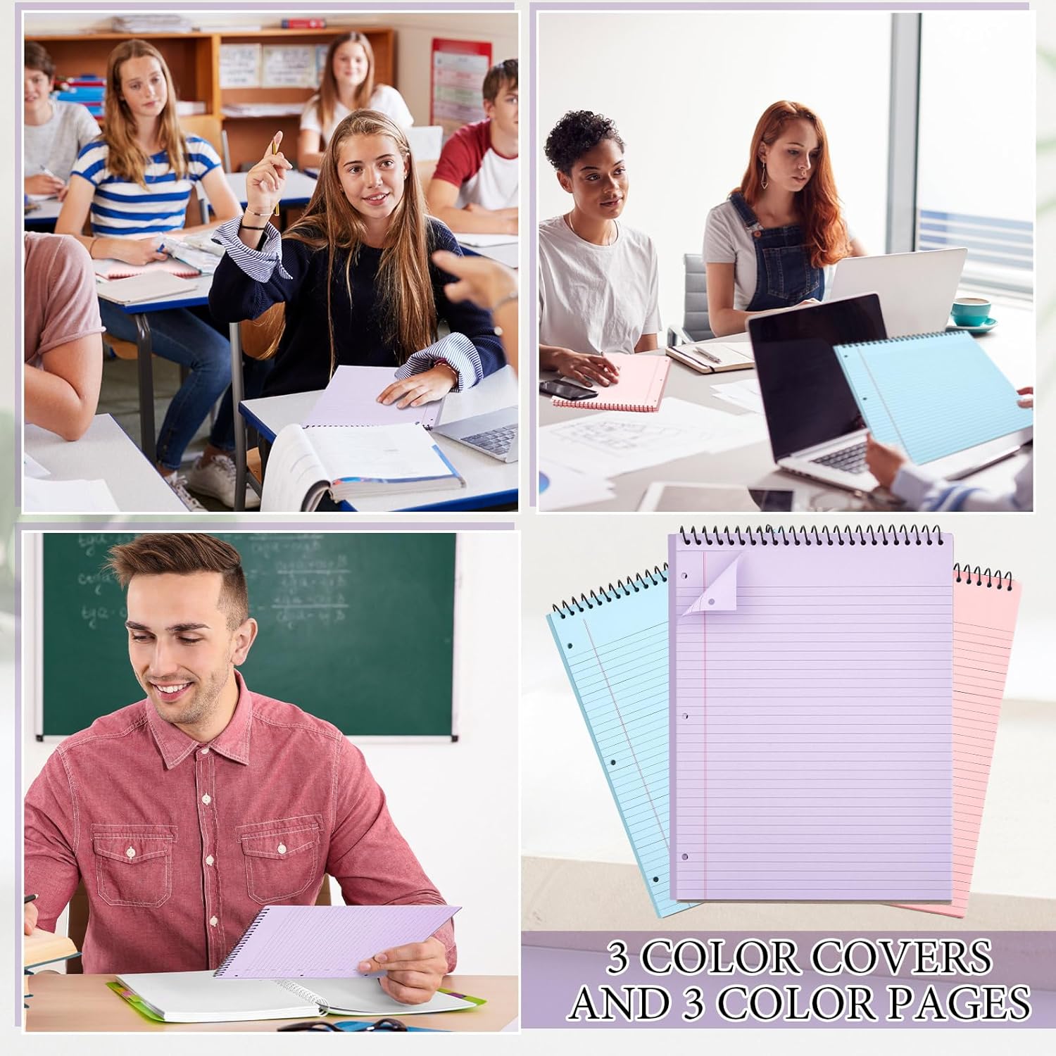 10 Packs 8.5" x 11" Top Spiral Notebook with 3 Hole Punched Legal Pads College Ruled Notepad 50 Sheets Hard Cardboard Paper Wirebound Notepad for Office School Business (Pink,Blue,Purple)