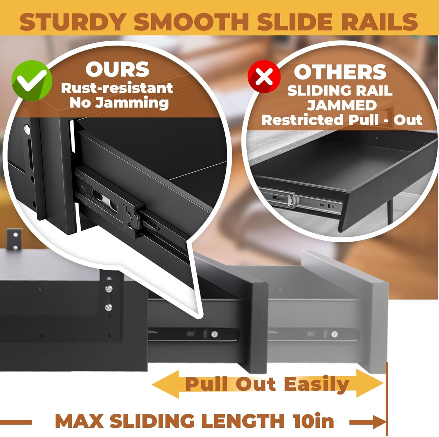 - πππππππ ππππππππ: Under desk drawer is made of premium cold steel ,high strength, good stability, strong anti-oxidation ability, ensure durability and long life. the surface matte black powder coating, which prevents scratching surface, easy to clean