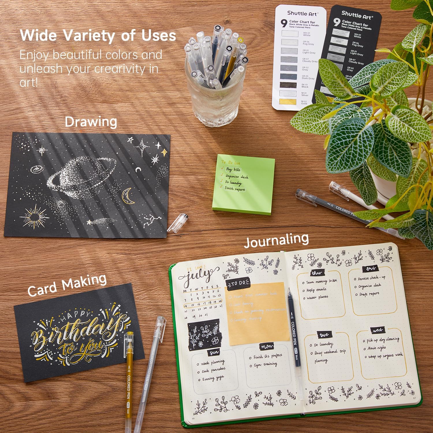 Shuttle Art Colored Pens, 22 Black White Gray & Metallic Tone Colors Cute Journal Pens 0.6mm Fine Point Colored Gel Pens for Black Paper Writing Drawing Journaling Note Taking School Office Home