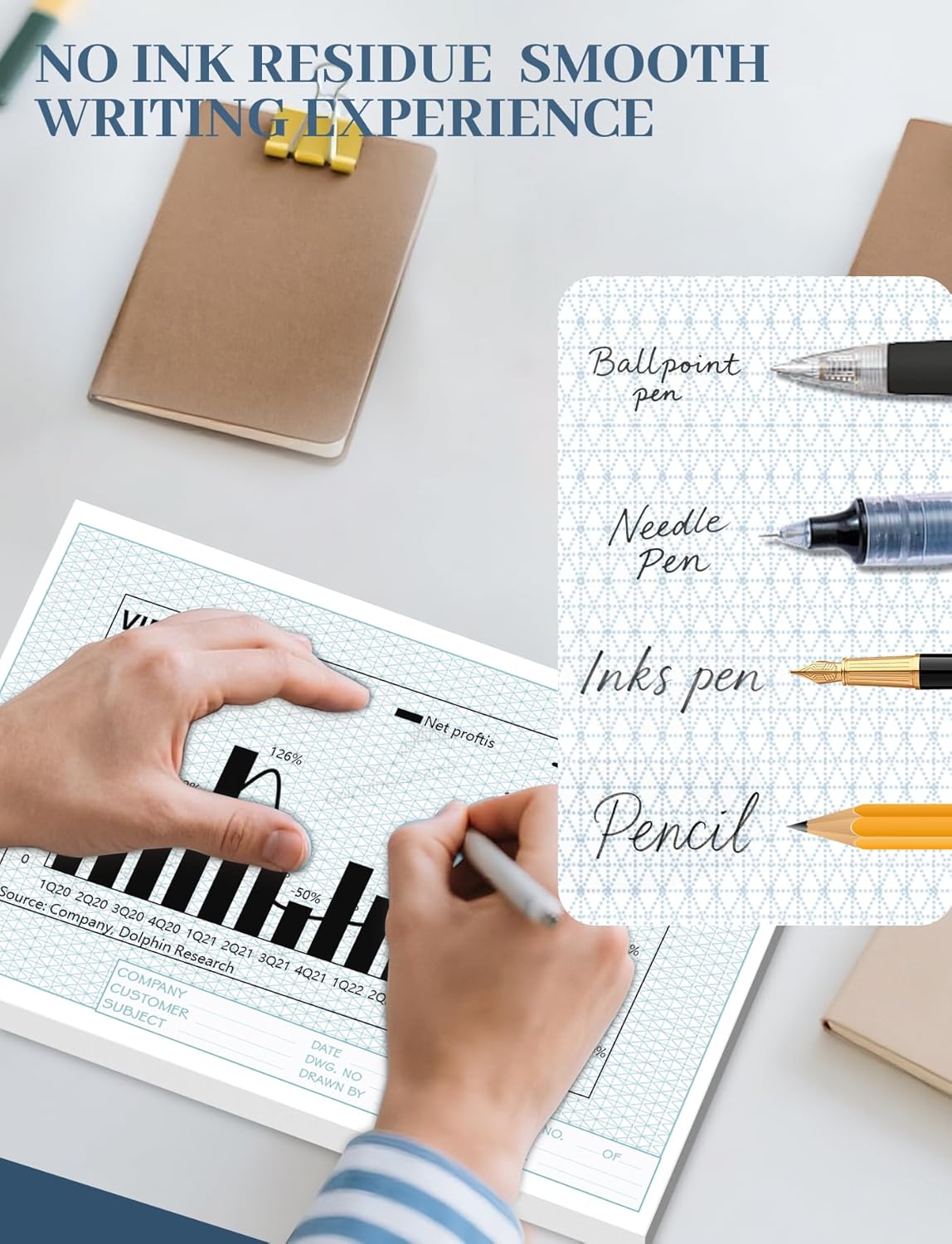 - [Ideal Size & Quantity]: This pad includes 50 sheets of grid paper, available in 11" x 17" sizes. The Large drafting paper dimensions fit easily into folders or cabinets, while the generous sheet count supports long-term use for work, study, or personal design tasks. 11x17 graph paper perfect for sketching, drafting, or planning larger technical layouts