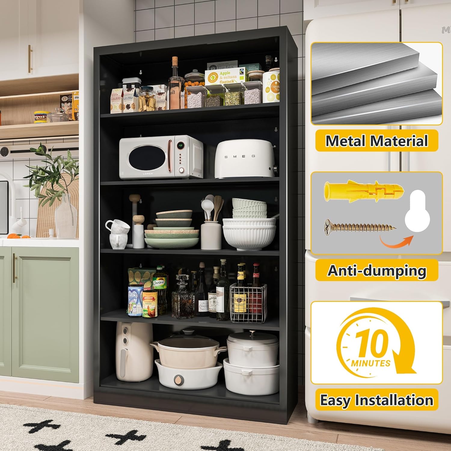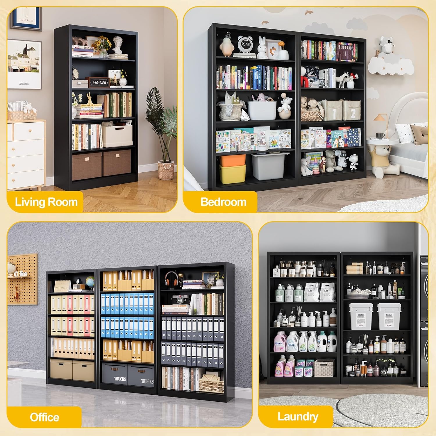 - 5 Tier Bookshelf Capacity: Constructed from solid cold-pressed steel, this metal bookcase supports up to 180 lbs per shelf, with a total weight capacity of 900 lbs. Industrial bookshelf with back panels keep books clean and secure