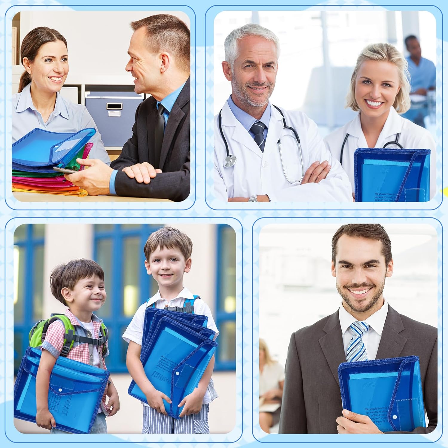 4 Pack A4 Expanding Plastic File Folders Waterproof Document Organizer with Snap Button Multiple Pockets, Office Home Office Storage (Blue)