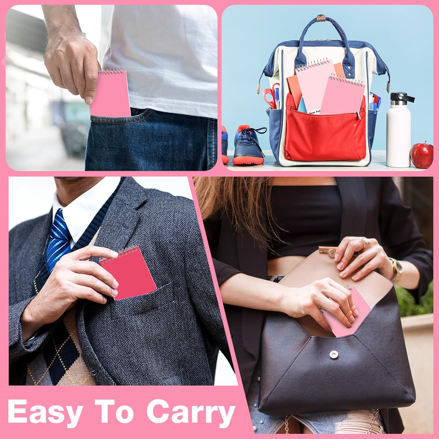 - Different Colors: top opening memo books pads have 4 colors: pink, hot pink, light pink, rose pink; Each color has 25 pads; Different colors can help you color code the project or subject, so that you can easily identify the notepad through the cover, ideal for quickly recording work or sharing information