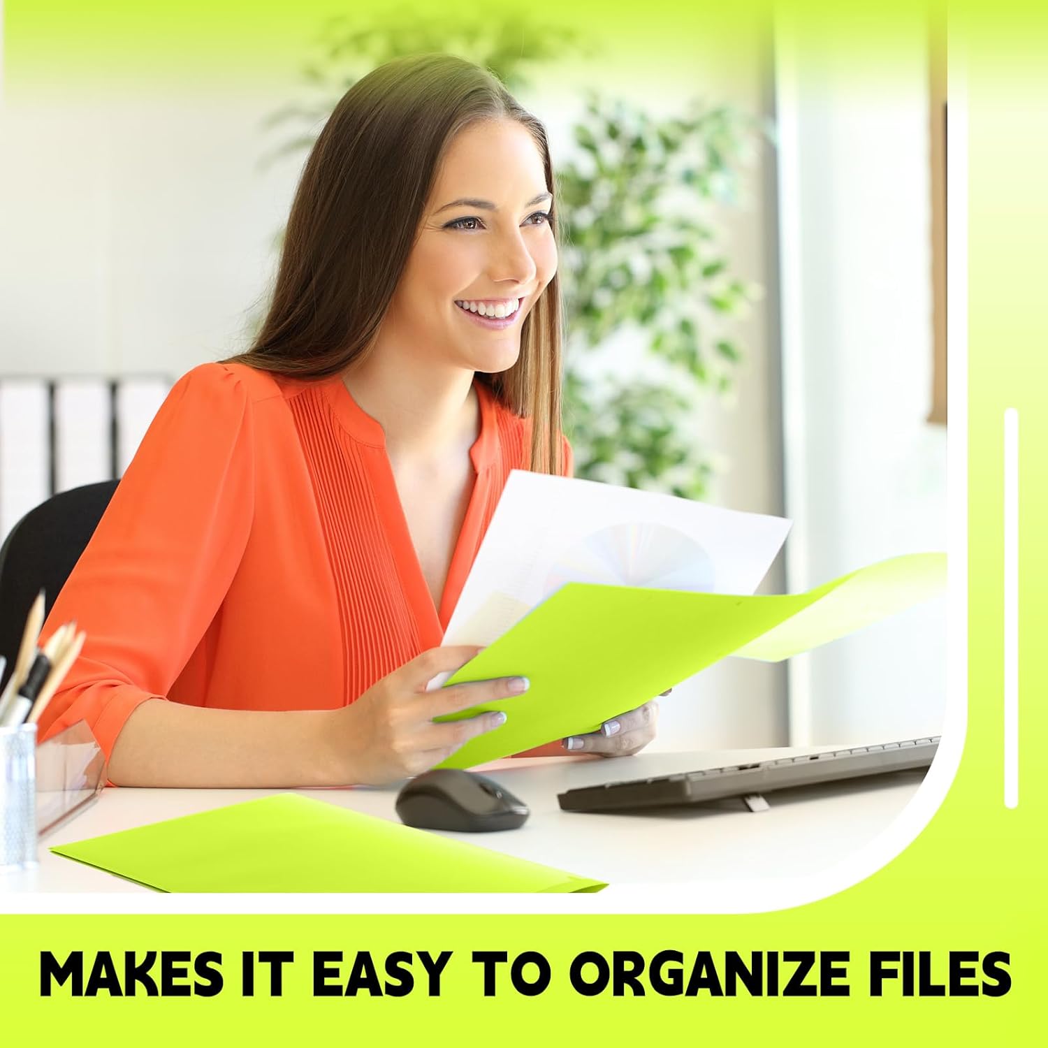 Gueevin 72 Pcs Two Pocket Folders Bulk Plastic File Folder with 2 Pockets Letter Size Paper Heavy Duty Durable Portfolios Case for Home Office School Business 11.61 x 9.45 Inch (Fluorescent Green)