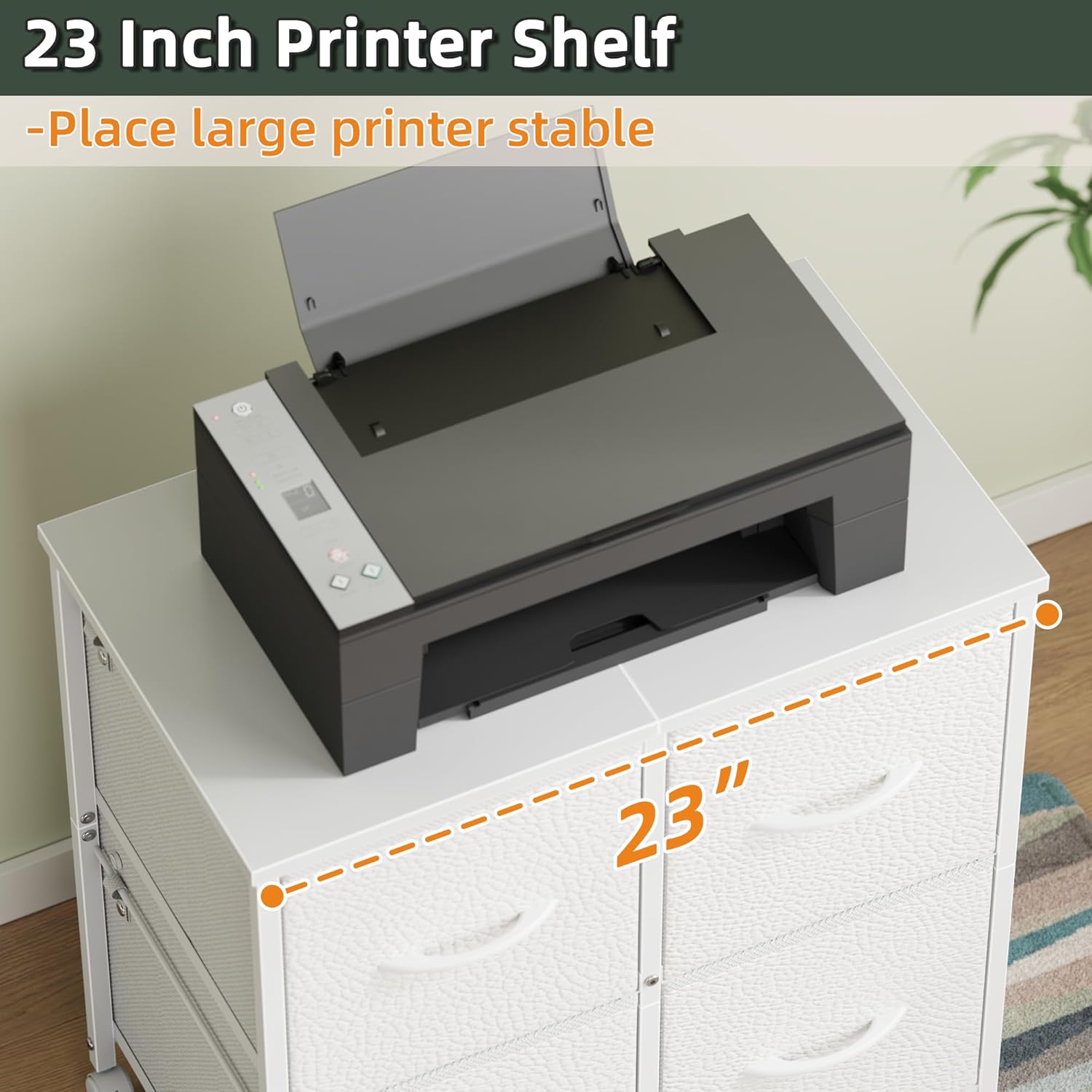 Lateral File Cabinet 4 Fabric Drawer, Mobile Filing Cabinet for Large Printer, Home Office Functional Small Office Storage Cabinet & Printer Stand, Fits A4/Letter Size, White