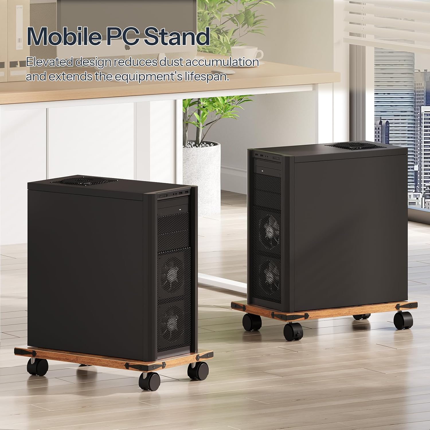 - Smooth Mobility and Secure Fixation: Equipped with four 360Β° rotating wheels, you can effortlessly position the PC tower holder wherever you want. Two of the wheels feature a locking mechanism to keep the PC stand secure and steady when needed