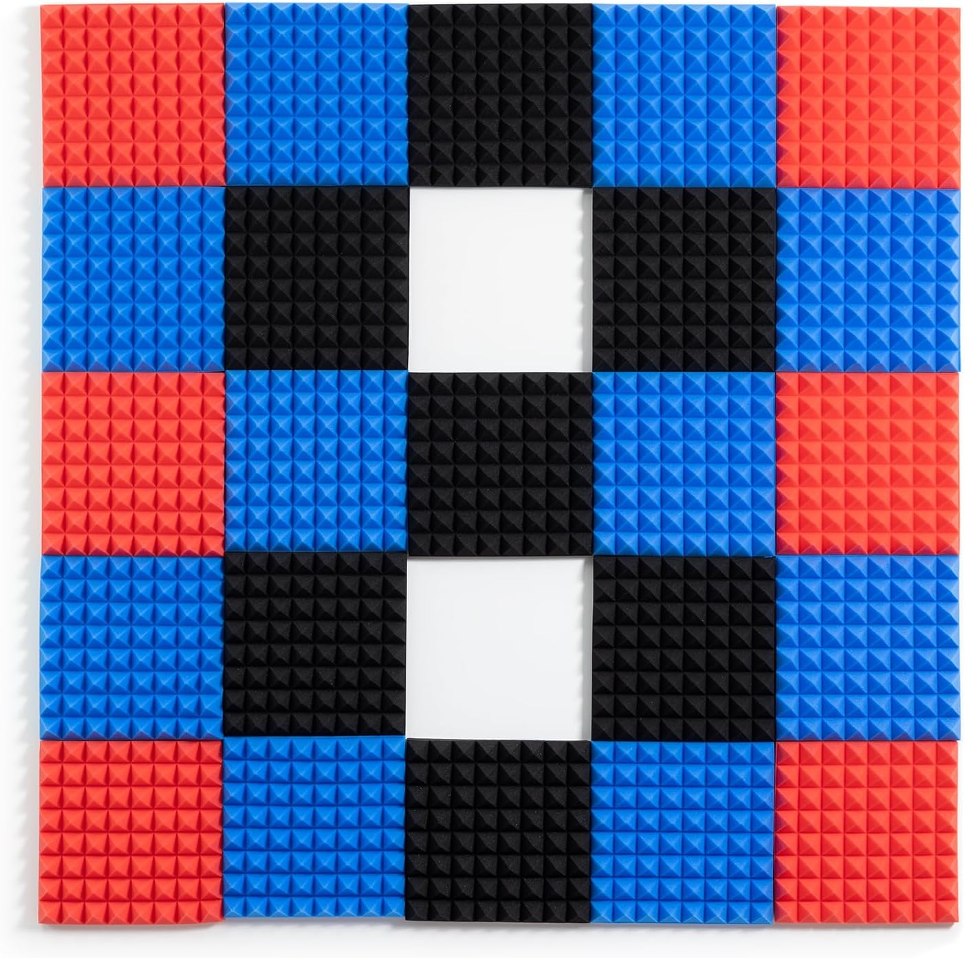 Sonicism Acoustic Panels Self-Adhesive Pyramid 12 Pack,12" X 12" X 2" Sound Proof Foam Panels for Walls,35kg/m³High Density Soundproof Wall Panels Fast Expand,Sound Absorption & Decoration(Red/Black)