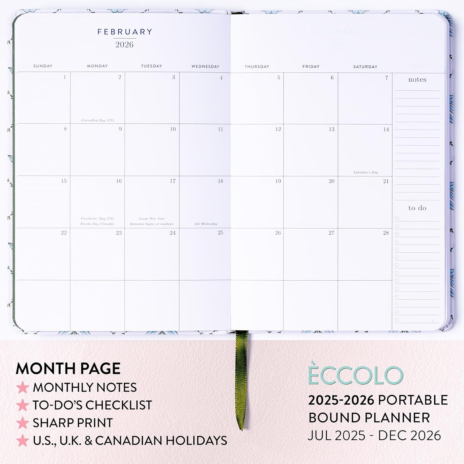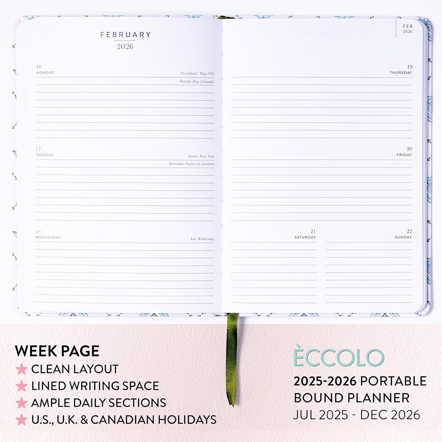 2025-2026 Eccolo 18 Month Linen Bound Planner, Monthly & Weekly Pages (5.25 x 7.75" - July 2025 - Dec 2026 - Blue Wallpaper)