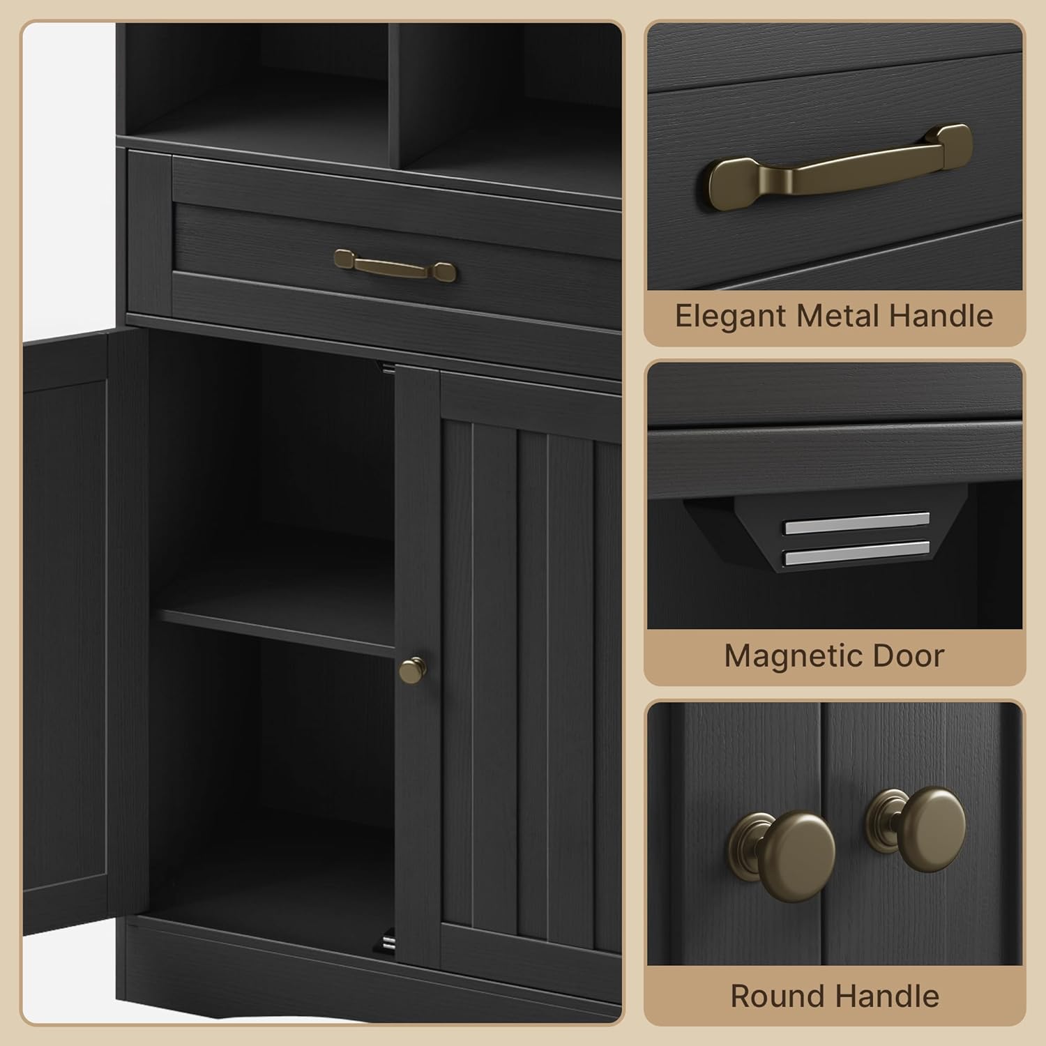 Gizoon 71'' Tall Storage Cabinet, Kitchen Pantry Cabinet with Doors & Drawers, Wooden Storage Organizer for Living Room, Office, Kitchen, with Adjustable Shelves, Anti-tip, Metal Handle, Black