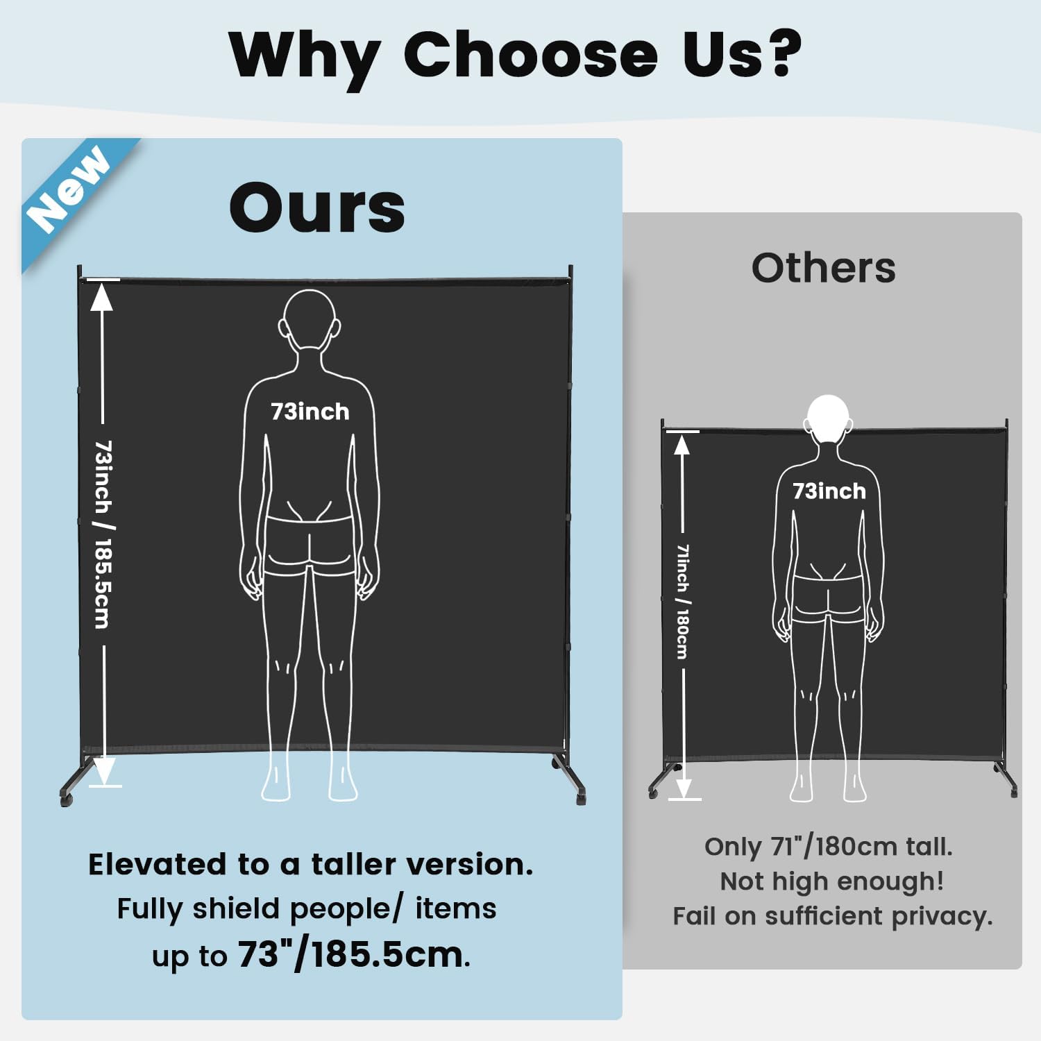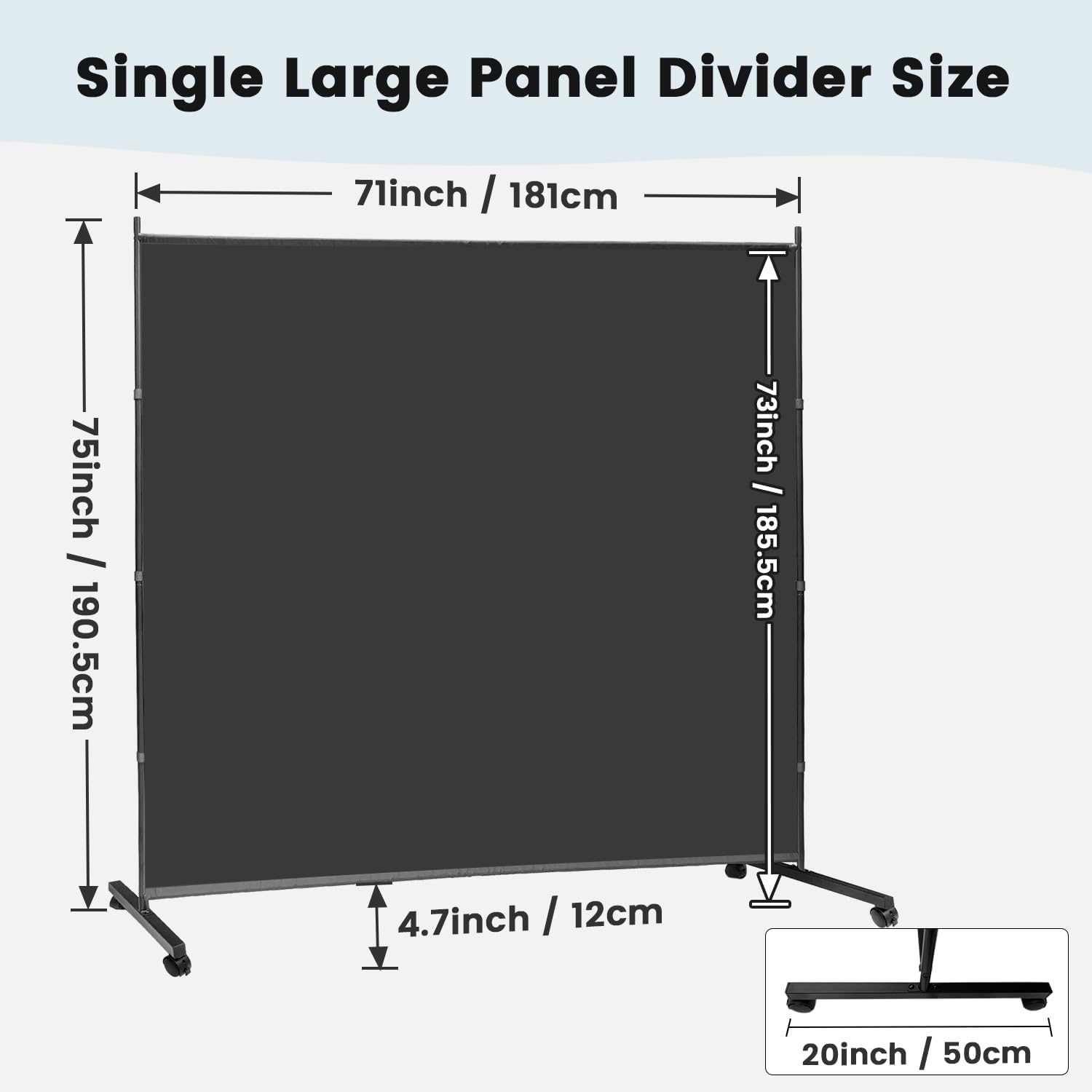 - 【Large Size】- Single panel room divider stands at 71"Wx75"Hx20”D, Taller version to shield people or items up to 73”/6Ft and fits more situations.