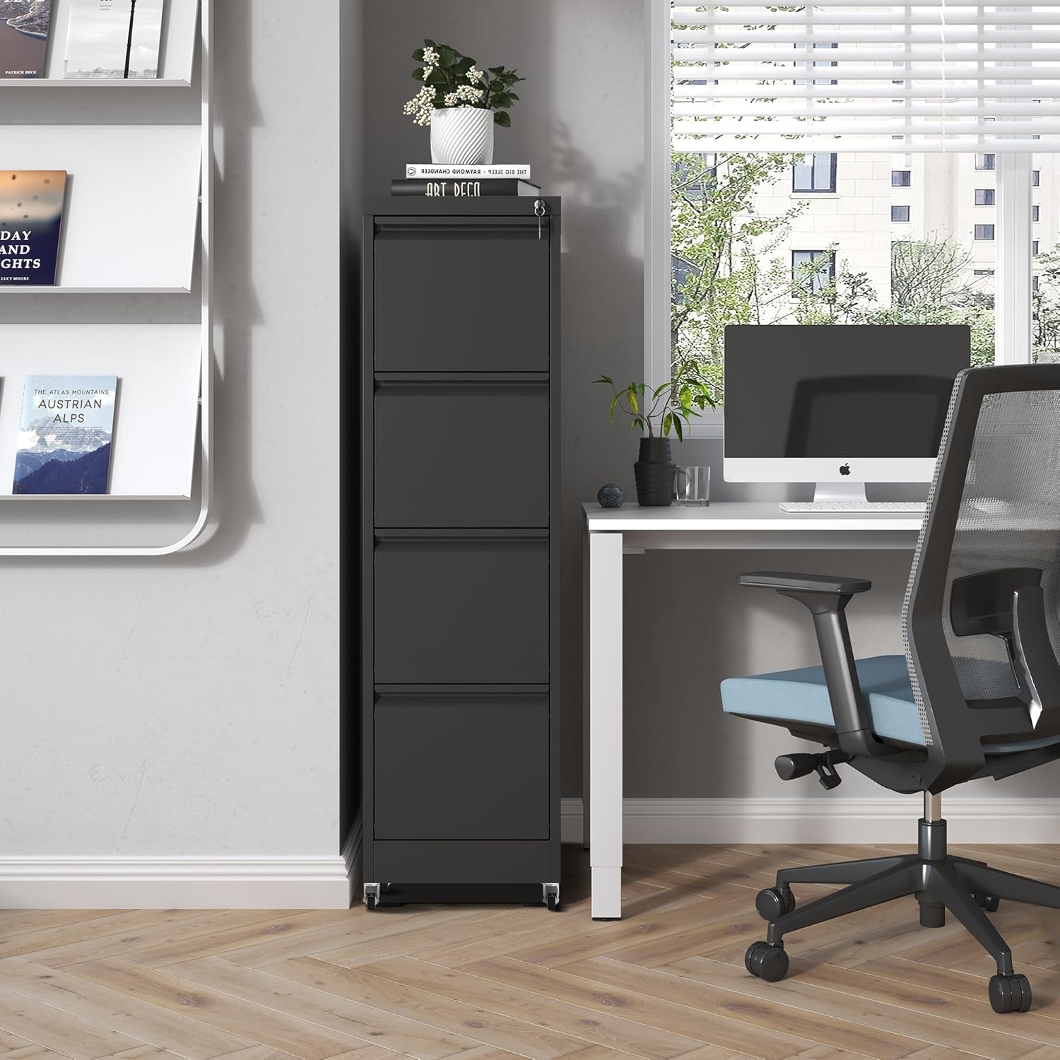- 【Secure & Anti-tilt Design】Our office filing cabinets with 4 drawer feature a locking mechanism and anti-tip feature. When one drawer is opened, the interlocking drawer system prevents the other drawers from opening, preventing tip-overs and increasing safety.