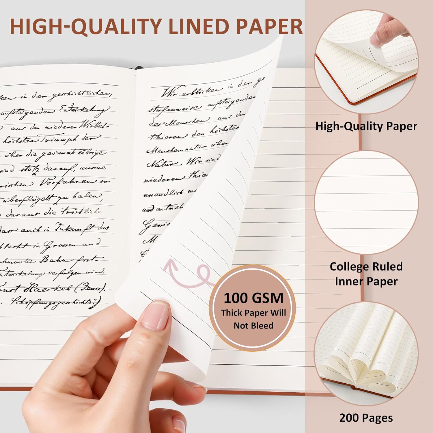 - 100 GSM Thick Notebook Journal: This notebook provides generous 200 pages for long-term use, reducing the need for multiple notebooks. Features high-quality 100 GSM thick, acid-free, ivory paper that prevents ink bleed-through and ghosting, ensures a smooth writing experience, and is gentle on eyes with 8mm college ruled lines. Works great with all pen types.