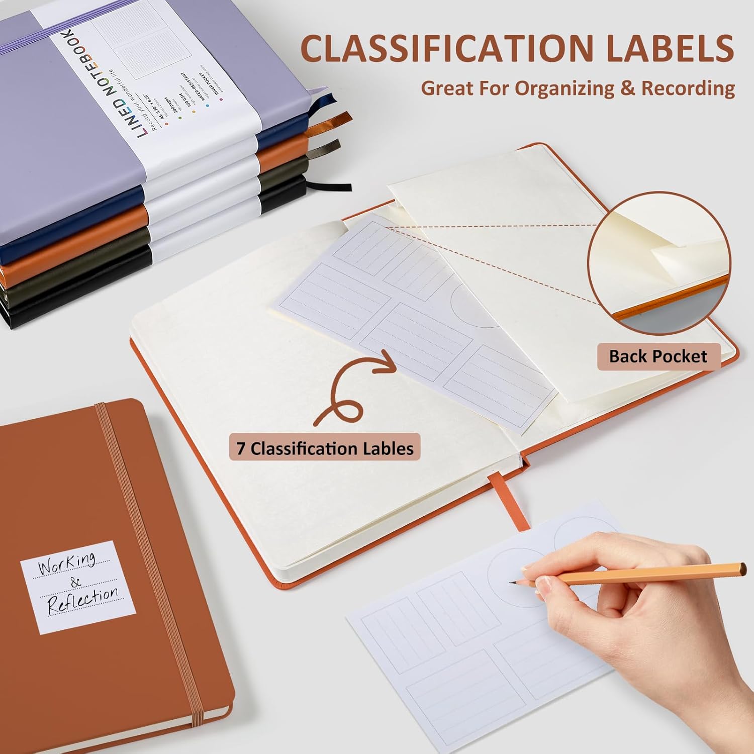 - 180° Lay Flat Design:The 180° lay-flat design ensures effortless writing at any angle, allowing seamless use of both pages. The A5 college ruled journal Notebook eliminates awkward angles and enhances the overall writing experience, adapting smoothly to any writing surface.The back cover of the notebook journal includes an expandable pocket to store small objects. The elastic band on the outside of the lined notebook can also help you fix and mark pages perfectly.