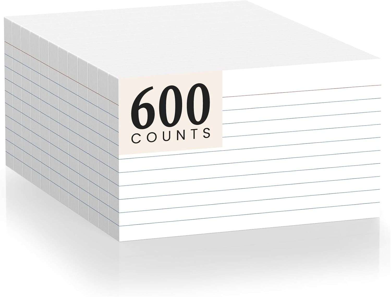 600 Count Index Cards 3 x 5 Inch White Lined Flash Cards Ideal for Studying and To-do-List, Portable Note Cards Taking for Students and Teachers, Flash Card Styled for Home, Office or School Use