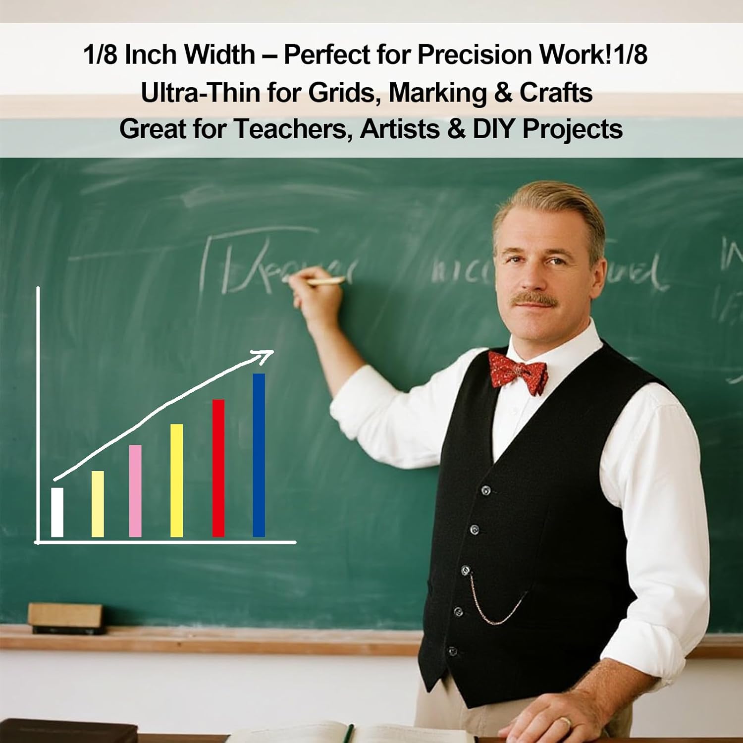 - Ultra-Thin & Precise (1/8 Inch) – Narrow width ideal for creating grid lines, marking measurements, trimming crafts, or labeling violin fingerboards.