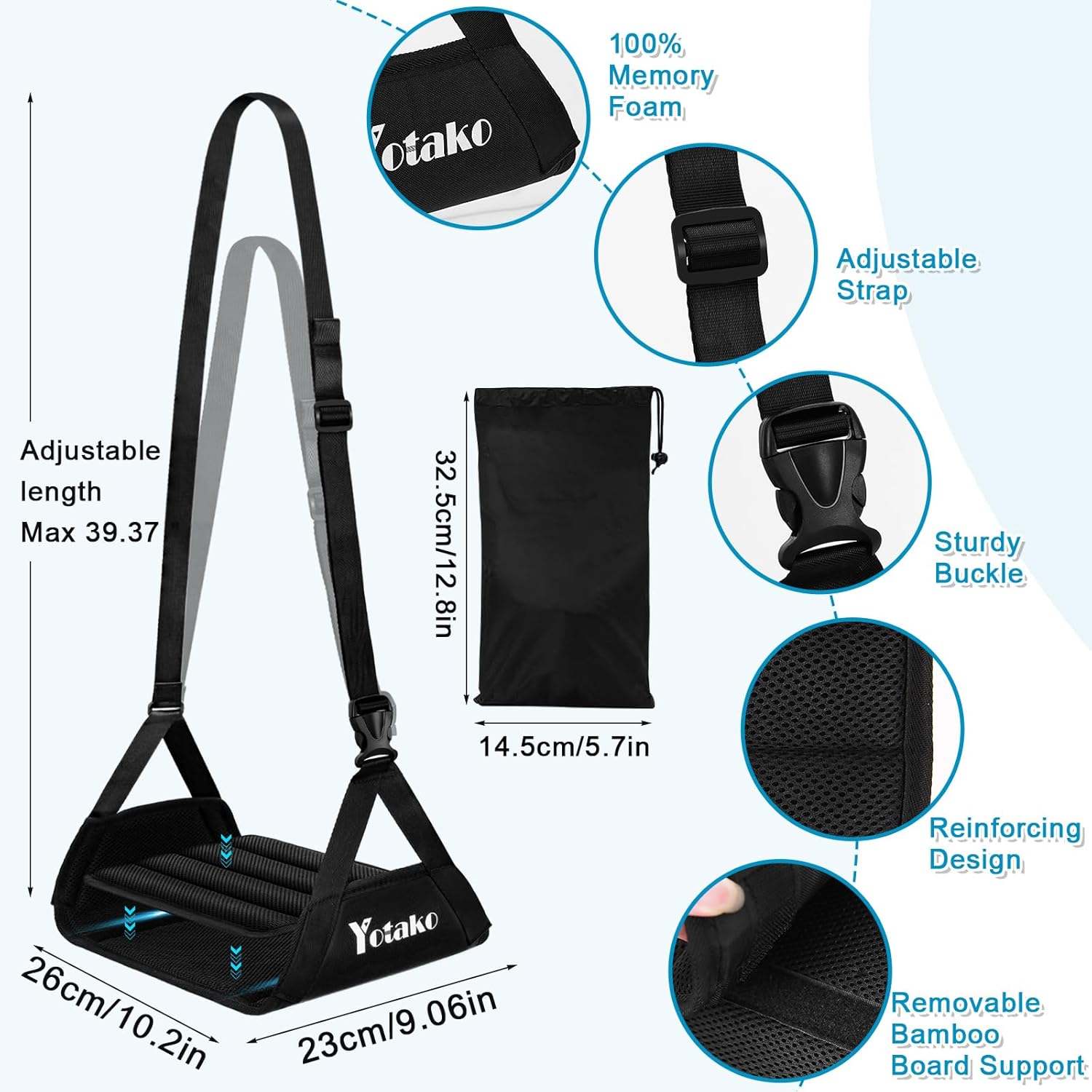 Yotako Airplane Foot Hammock-Removable Wide Bamboo Airplane Foot Rest with Extended Adjustment Strap, Desk Foot Hammock to Relax Your Feet Foot Sling Travel Essentials with Storage Pouch, Black