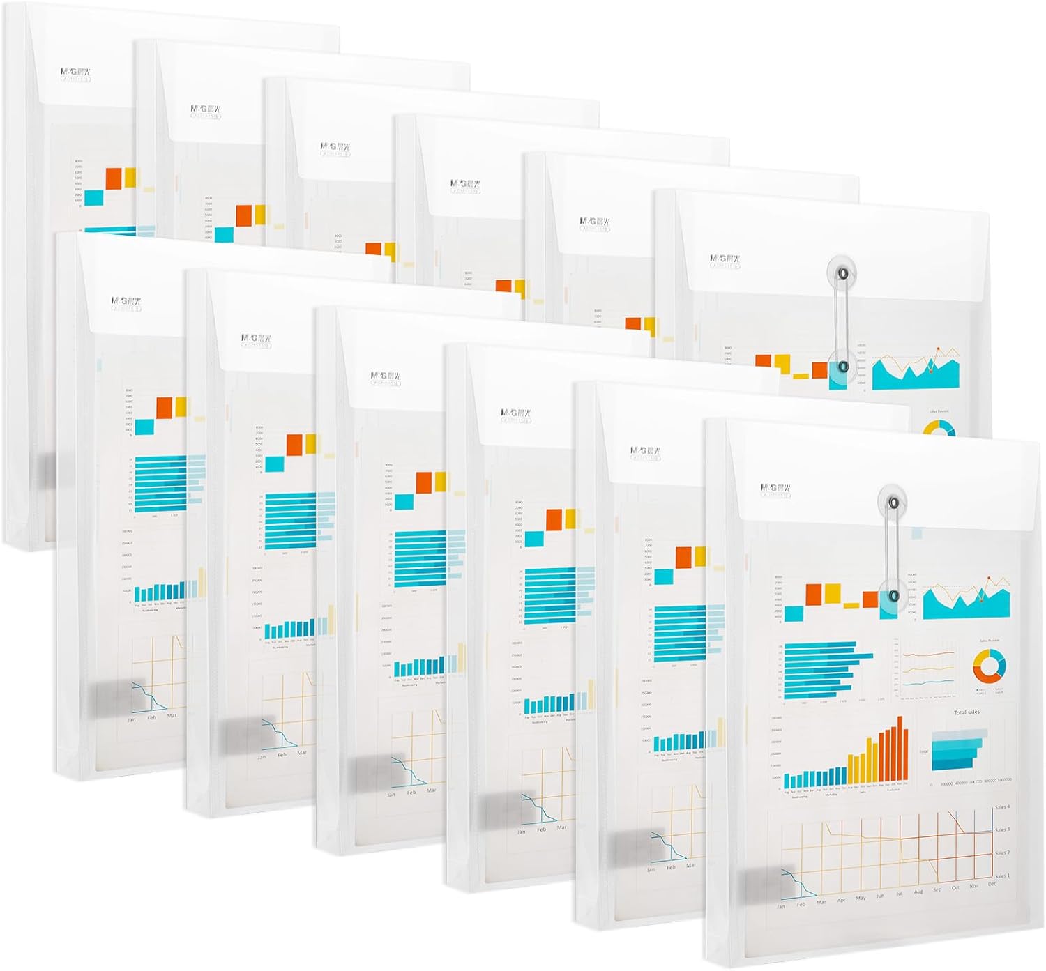 M&G 12 Pack Plastic Envelopes File Folders, Clear Poly Document Folder, Expandable Files Document Folders with Button & String Tie Closure- US Letter A4 Size for School Home Work Office Organizer