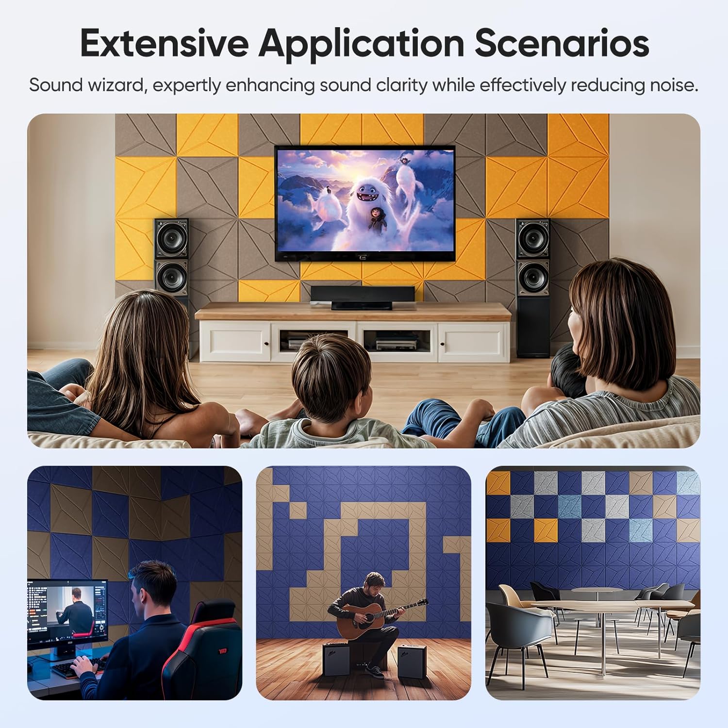 - Effortless Installation -- Each acoustic panel comes with a strong self-adhesive backing—just peel and stick. No tools, nails, or extra adhesives needed.