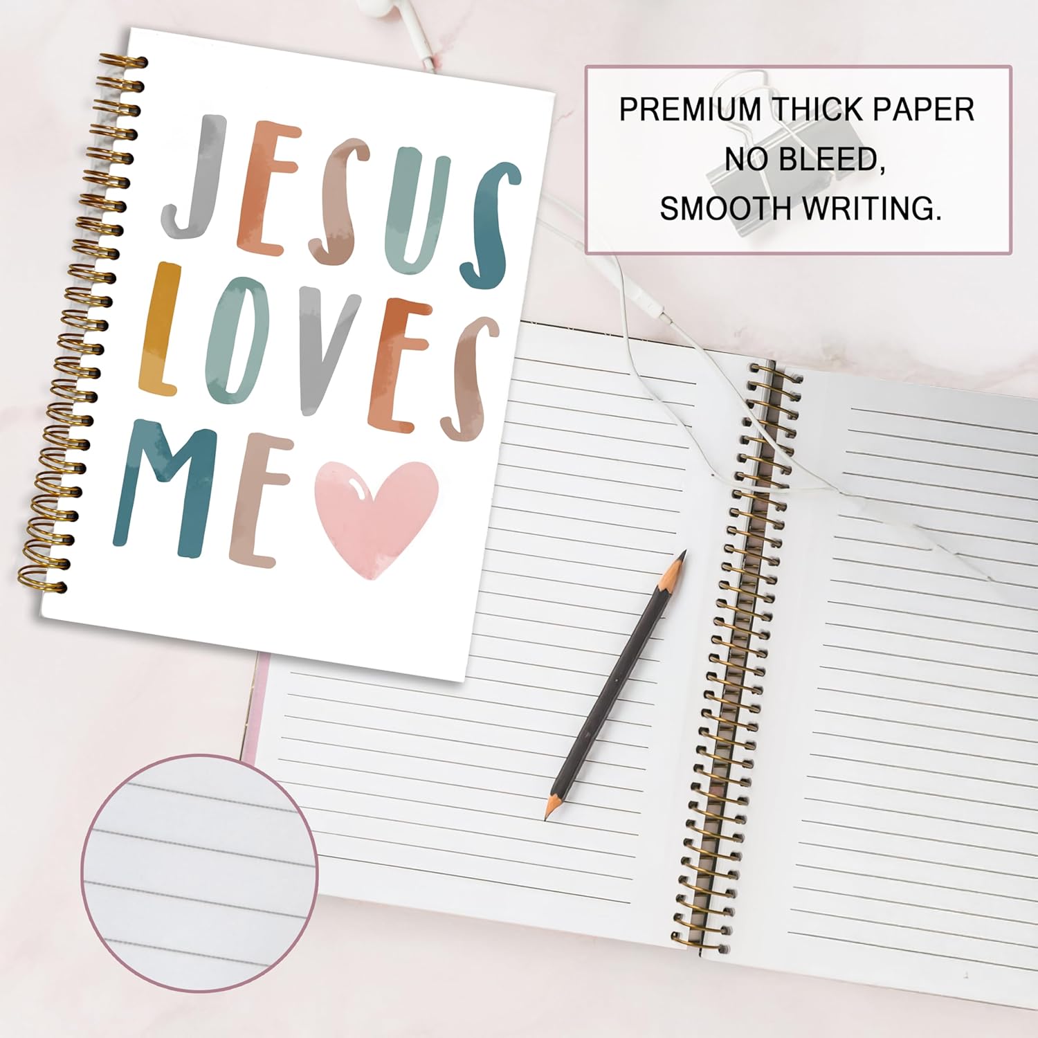 - 2.Bible Journaling Hardcover Spiral Notebook The notebook has a double spiral design, the sturdy spiral binding allows the notebook to lay flat, making it easy to write on both sides of the page. made of thick paper, prevents ink from leaking, safe, easy to write